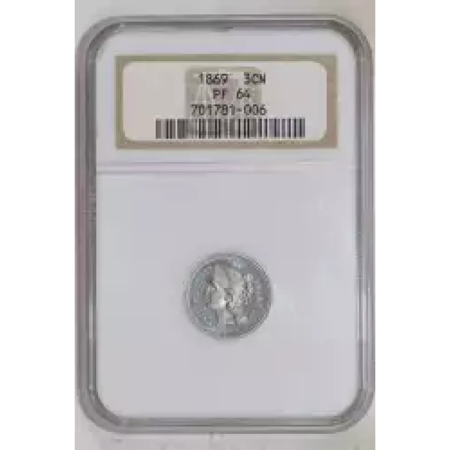507274 | 1869-PF-65 Three Cent Pieces (Nickel) NGC PF-65 | NGC | PF-65 | Sold: 04/12/2016 | $750 |