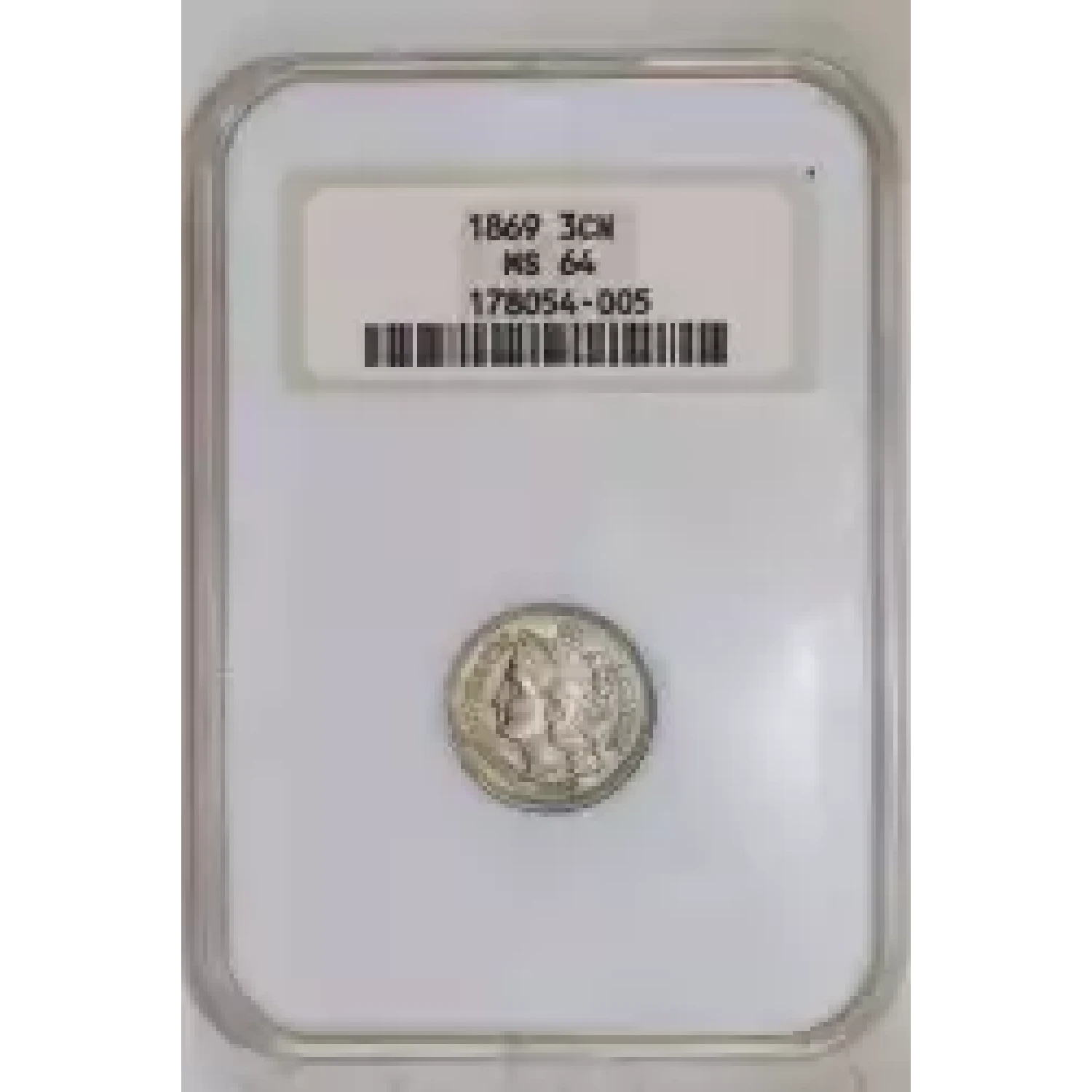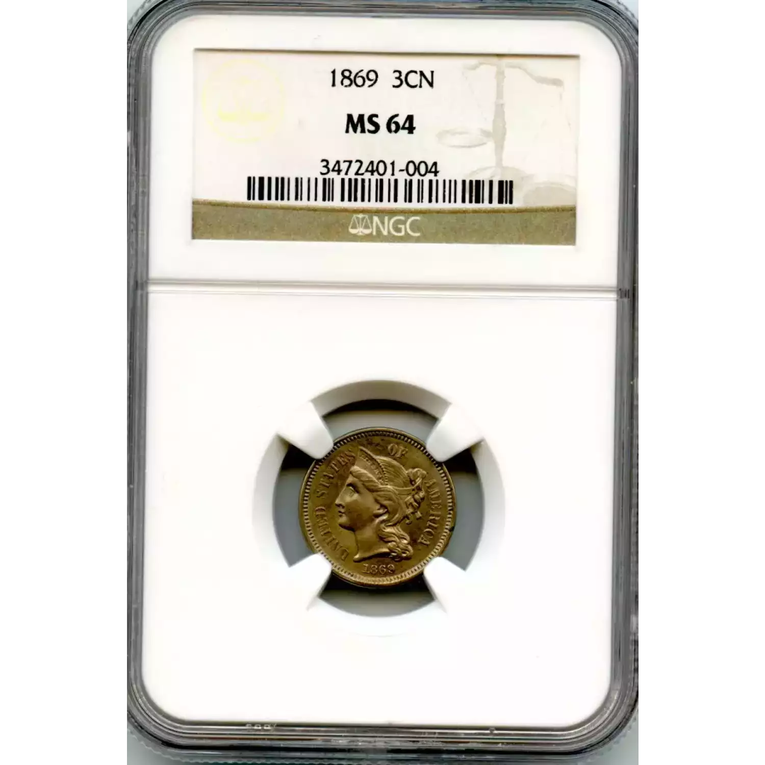 520382 | 1869 Three Cent Pieces (Nickel) NGC MS-64 | NGC | MS-64 | Sold: 07/11/2023 | $375 |