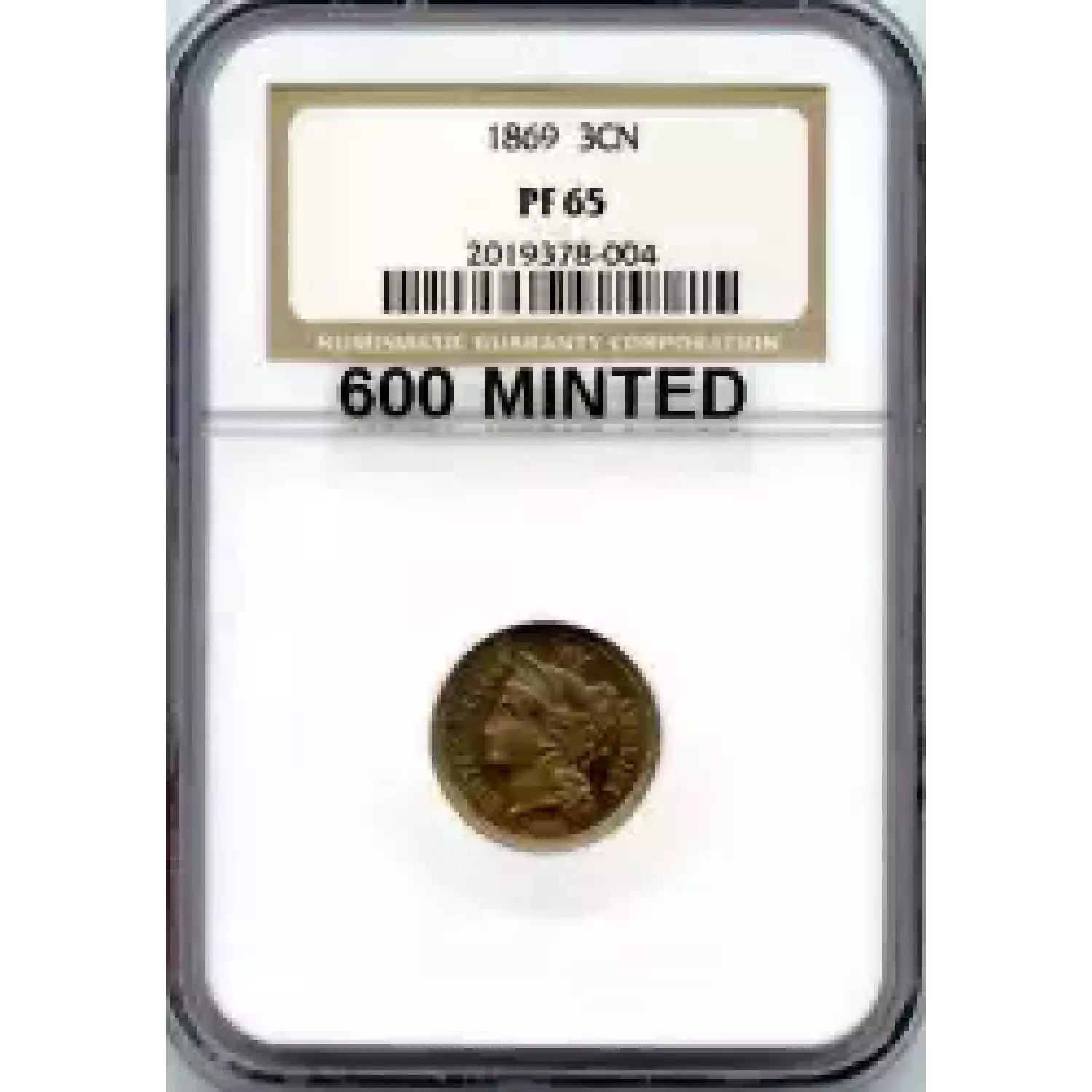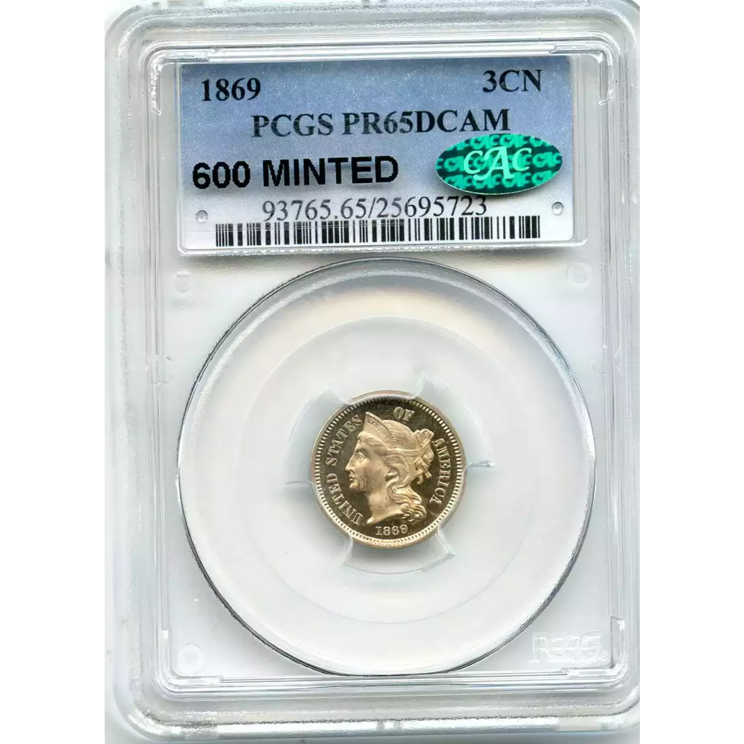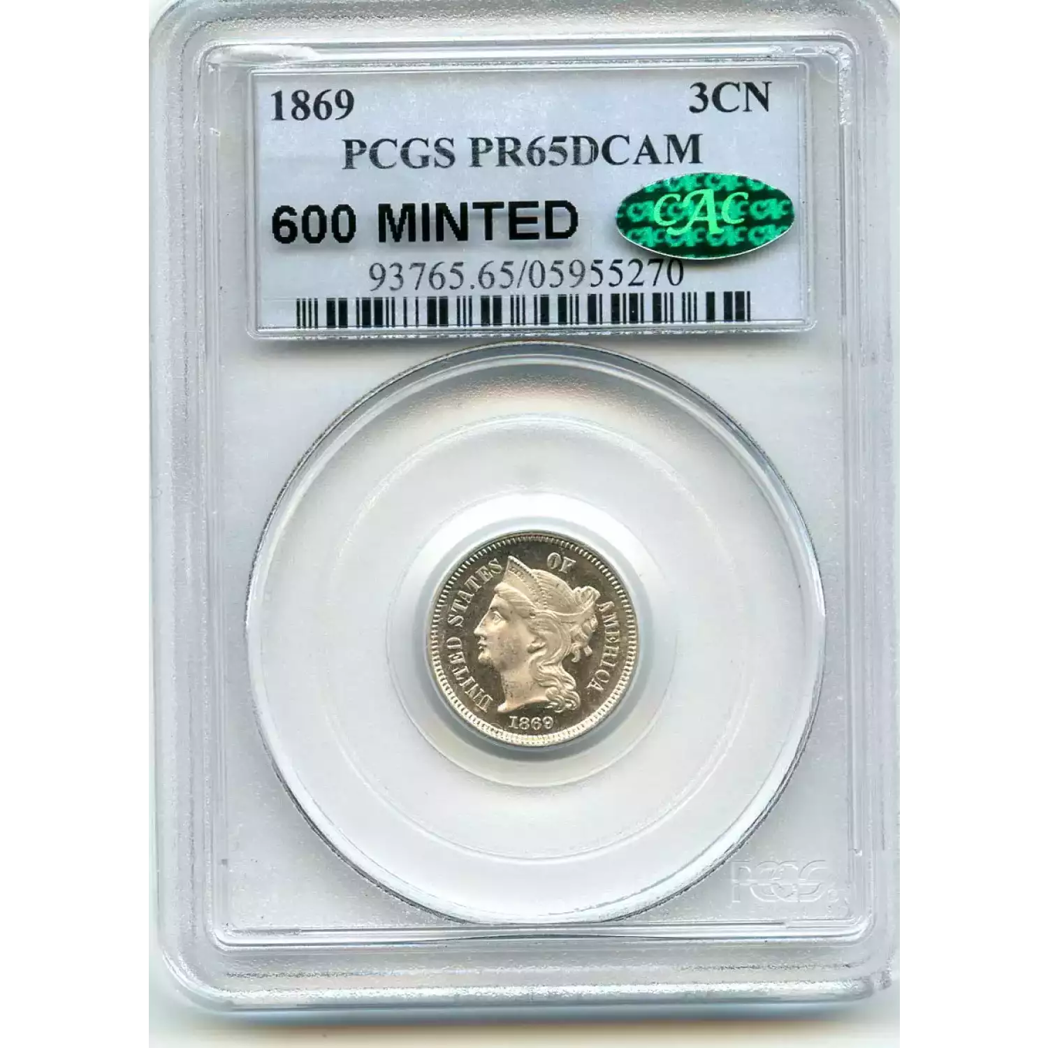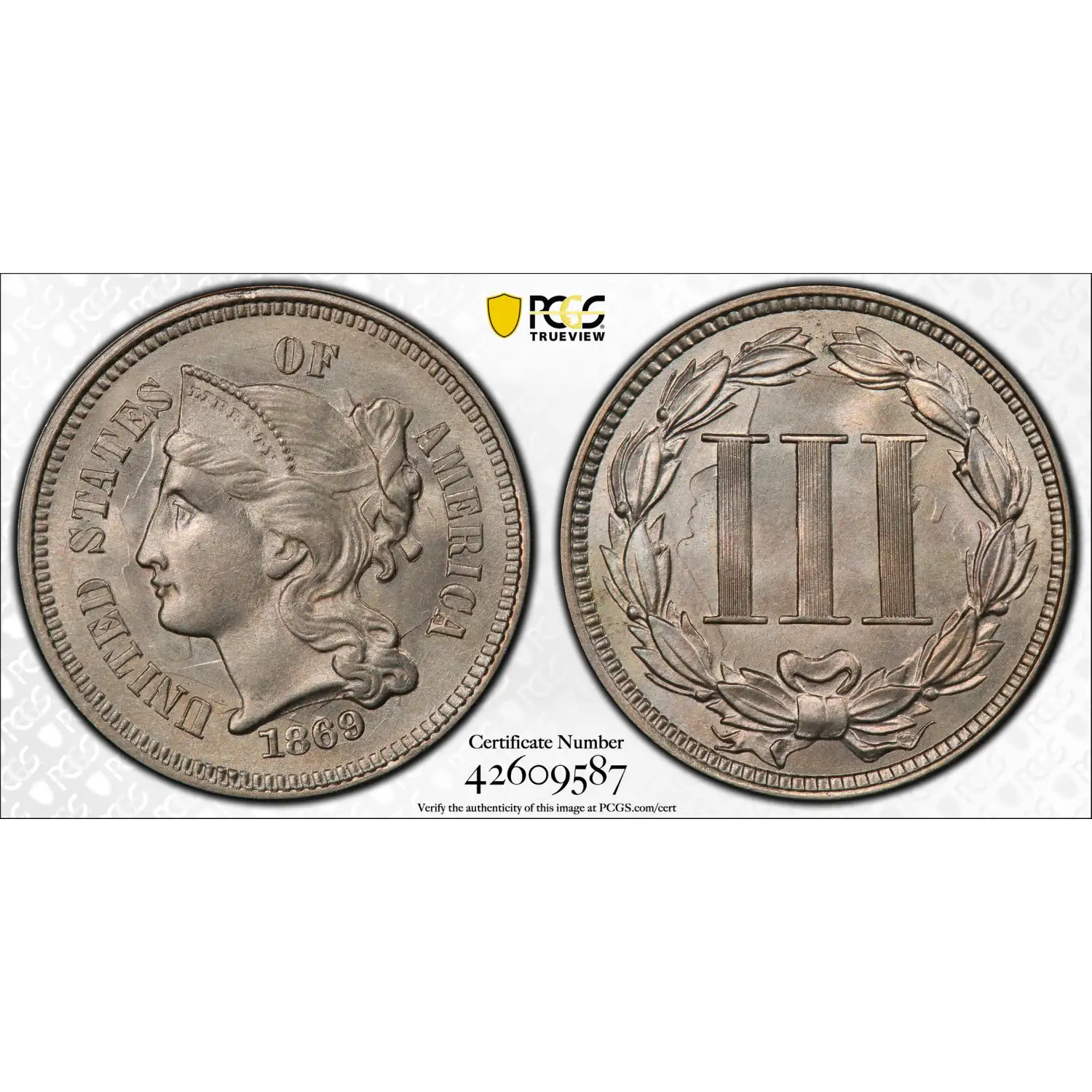 513121 | 1869-PR-65 Three Cent Pieces (Nickel) PCGS PR-65 DCAM CAC | PCGS | PR-65 | Sold: 09/12/2019 | $950 |