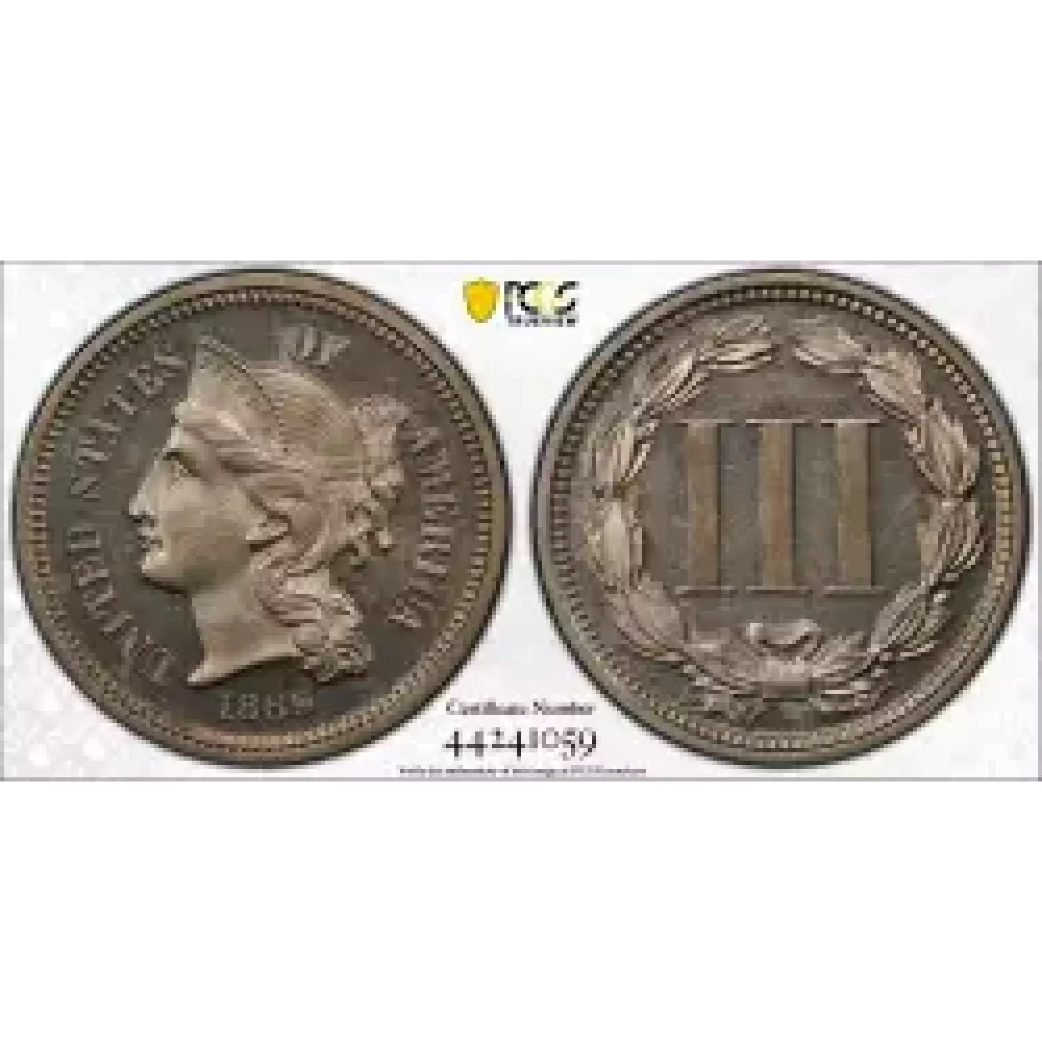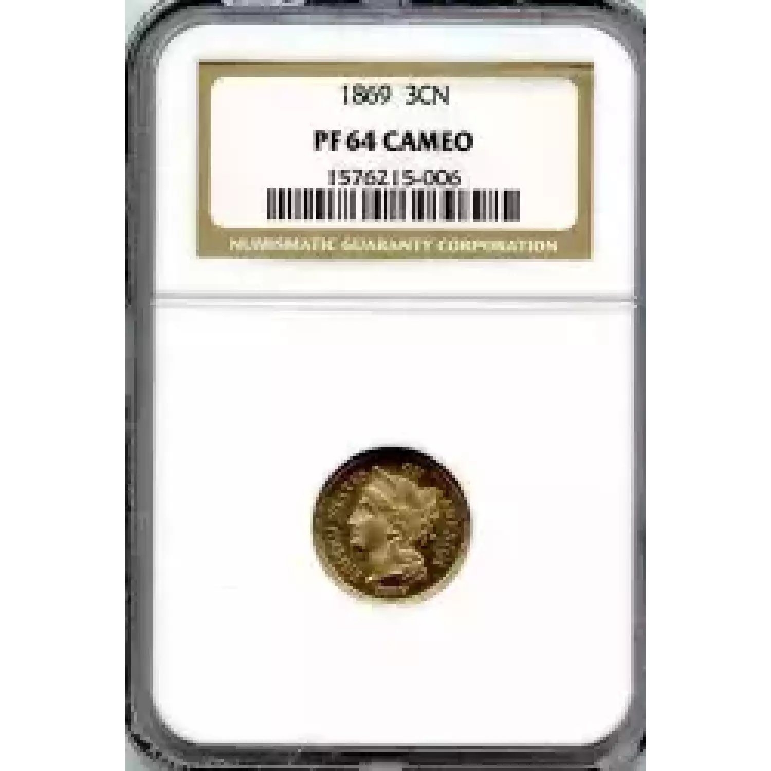 500880 | 1869 Three Cent Pieces (Nickel) PCGS PR-64 CAM | PCGS | PR-64 | Sold: 14/07/2022 | $625 |
