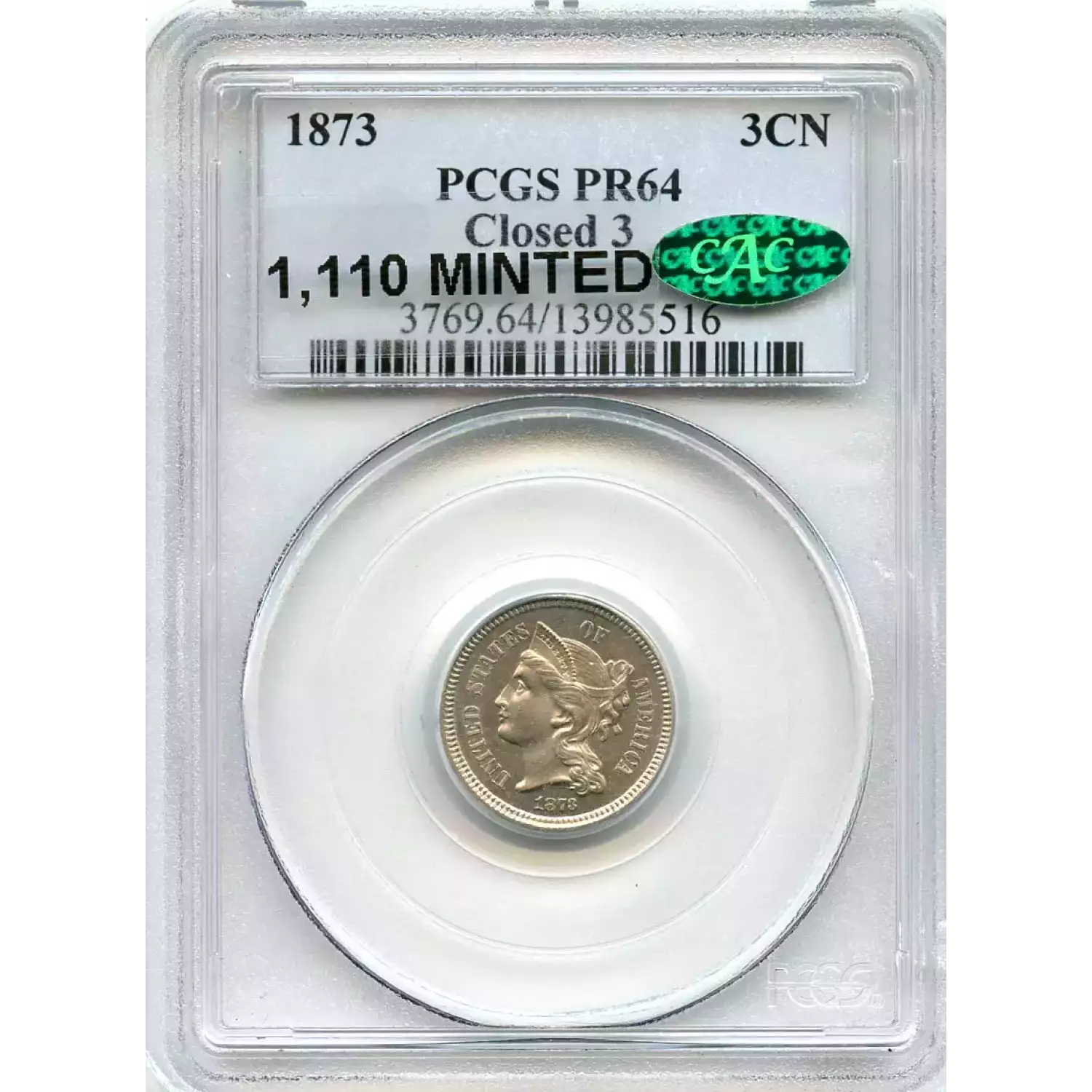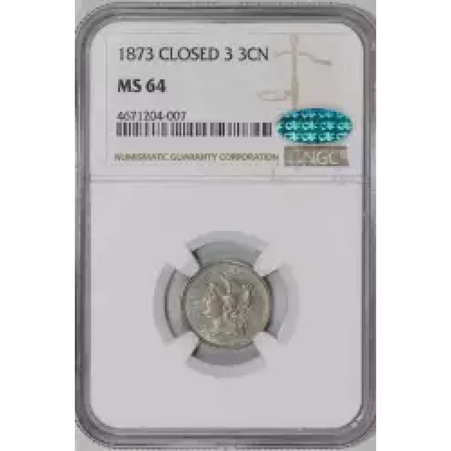 502282 | 1873 Three Cent Pieces (Nickel) NGC MS-64 CAC | NGC | MS-64 | Sold: 05/07/2022 | $450 |