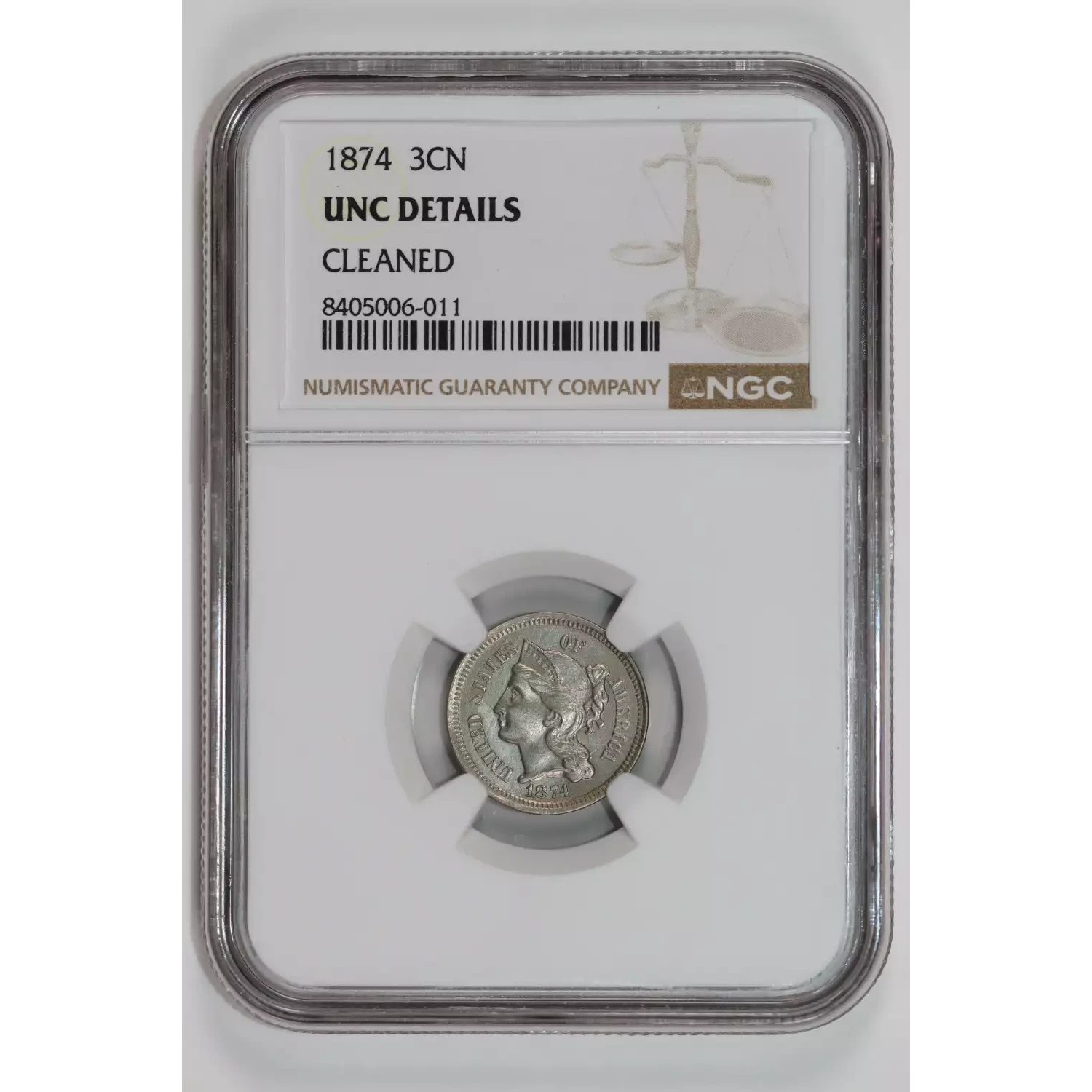 535401 | 1874 Three Cent Pieces (Nickel) NGC UNC Details | NGC | UNC Details | Sold: 09/10/2025 | $225 |
