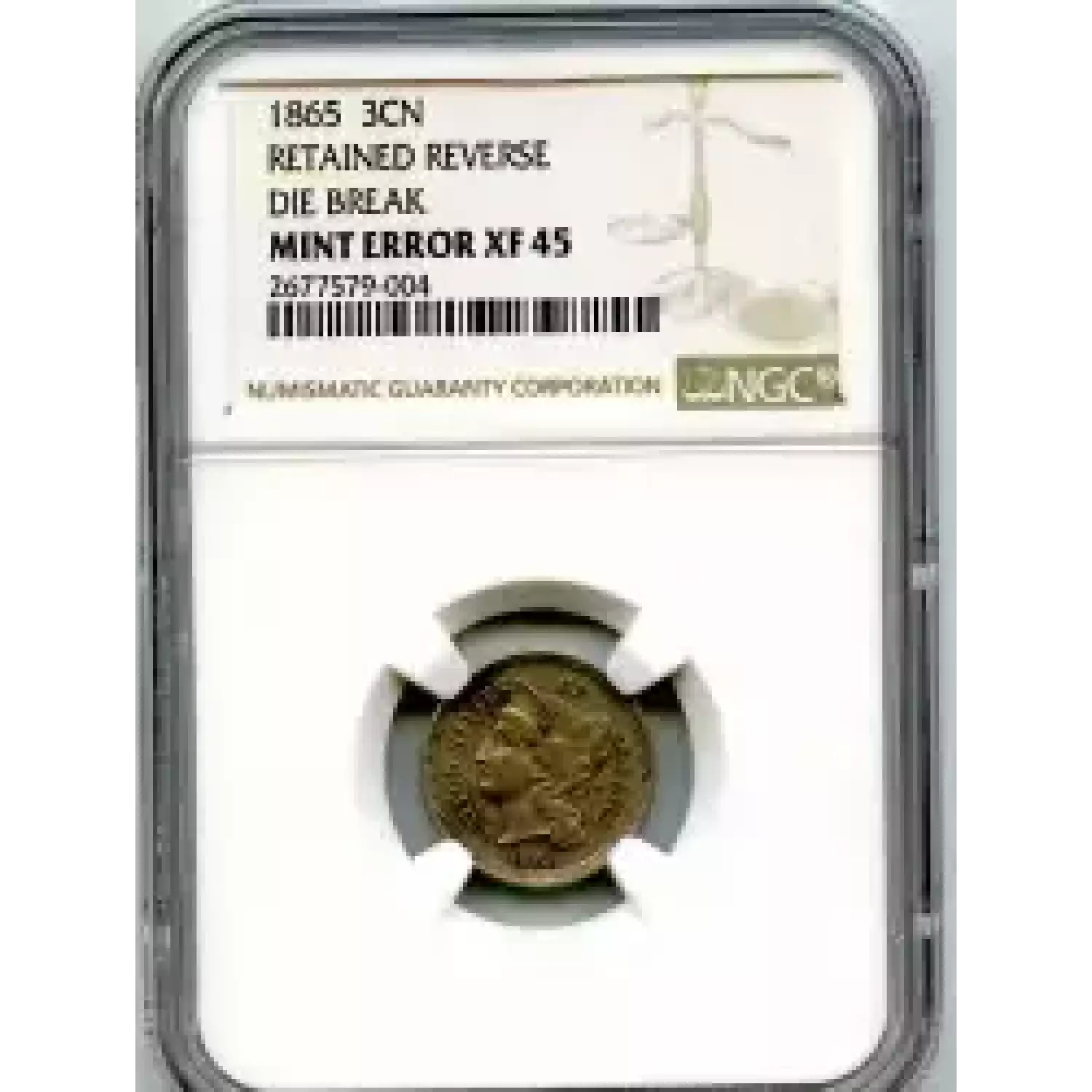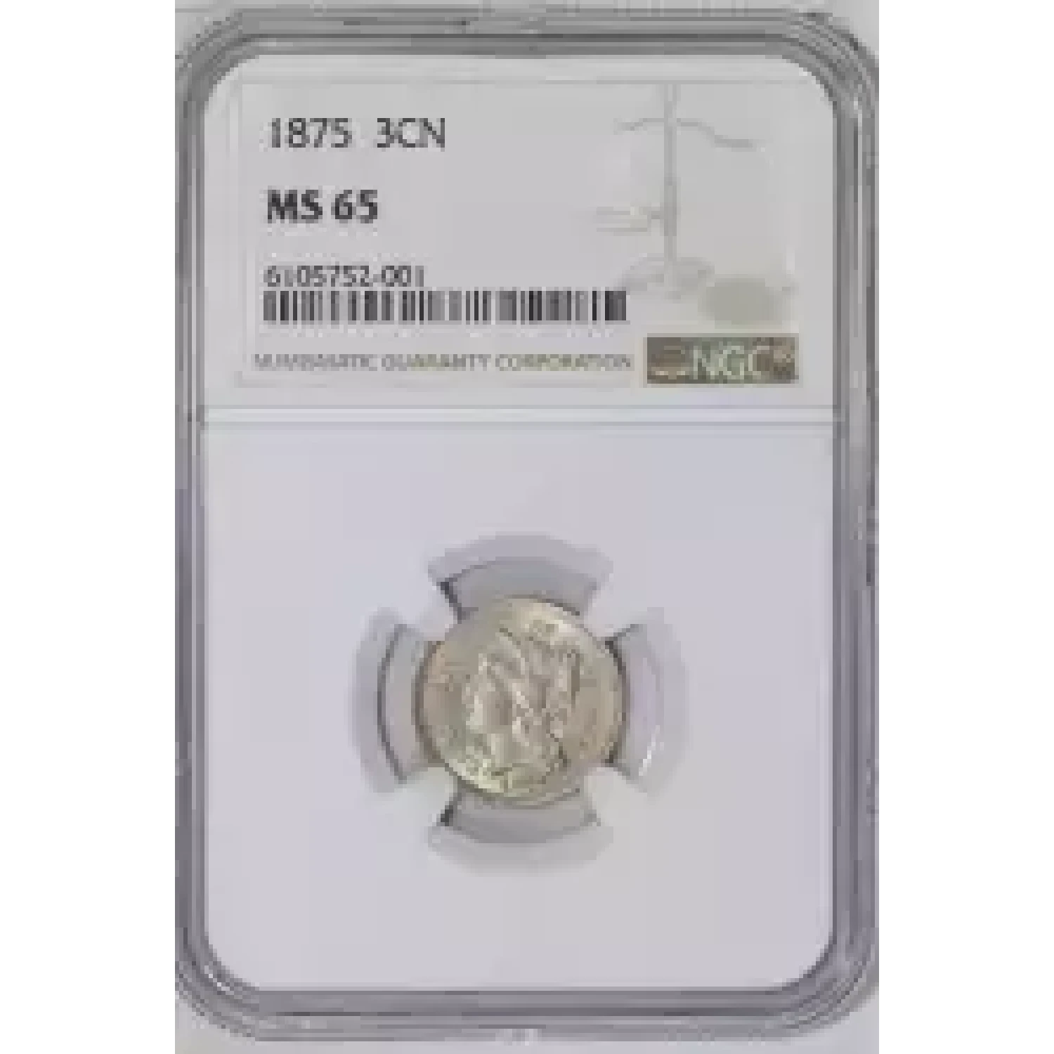 501968 | 1875 Three Cent Pieces (Nickel) NGC MS-65 | NGC | MS-65 | Sold: 18/04/2023 | $790 |