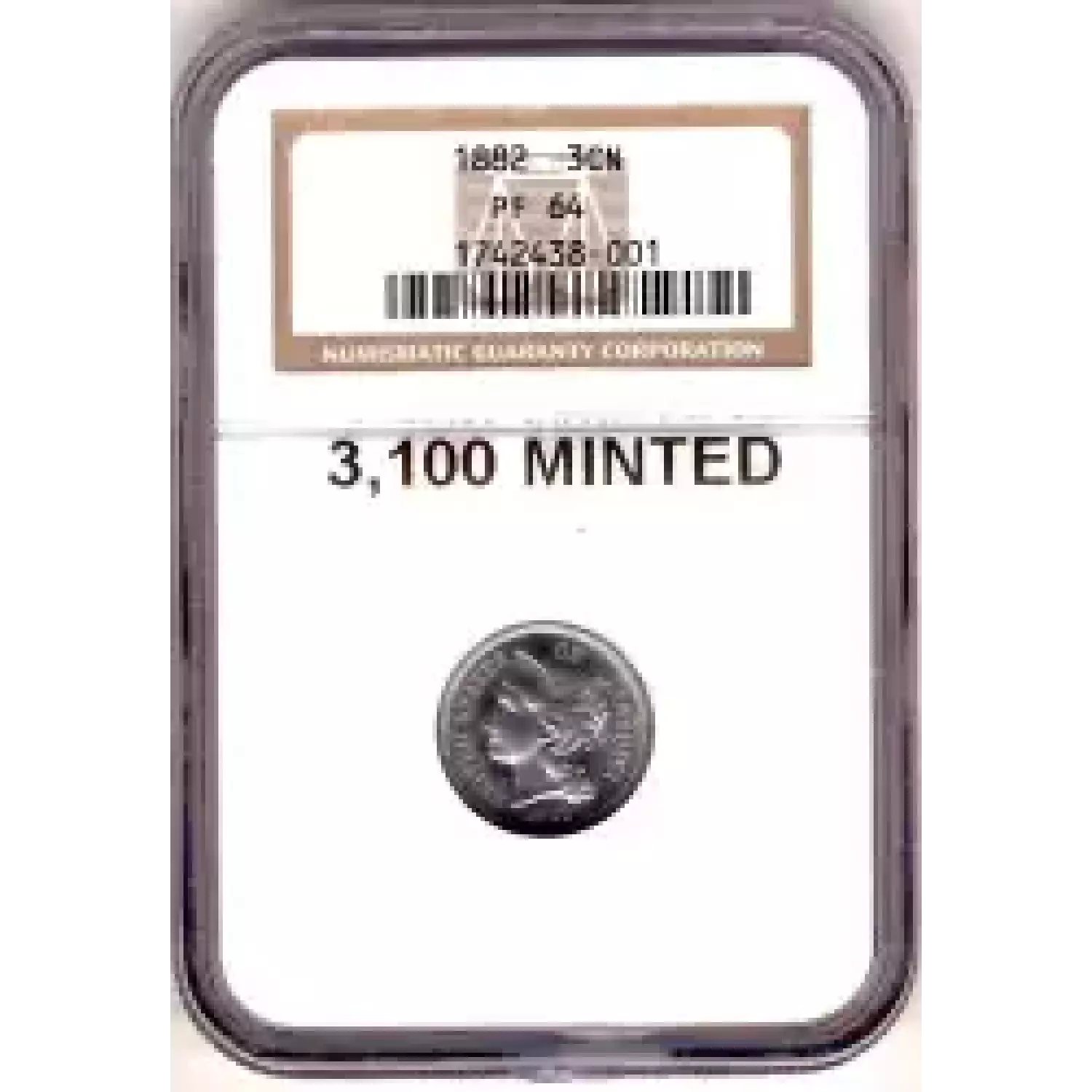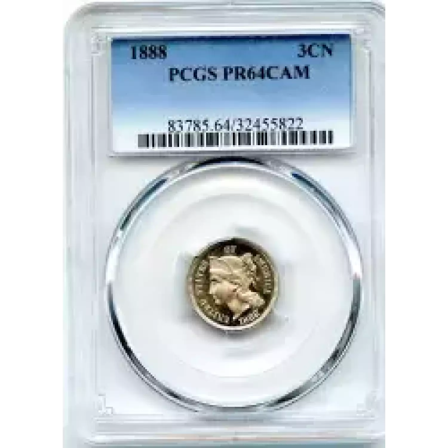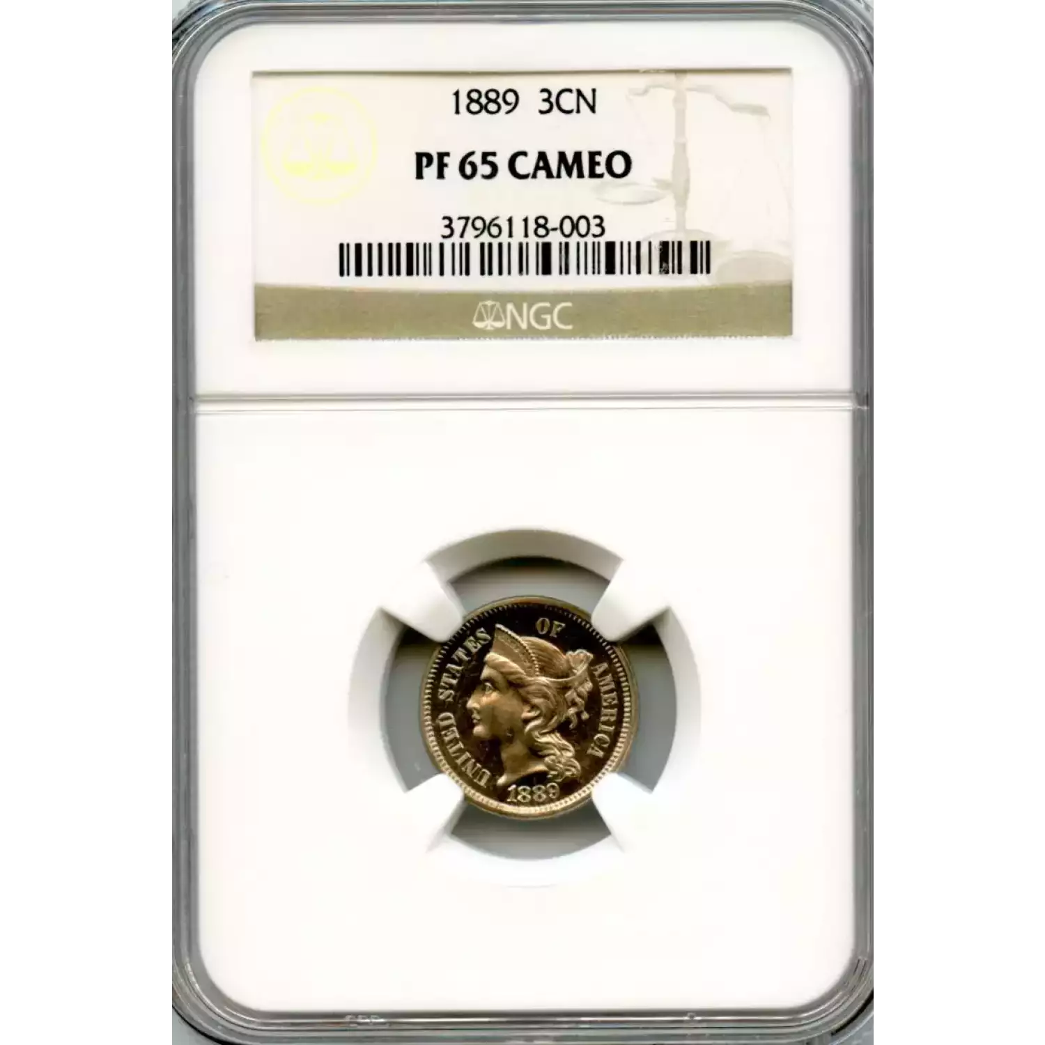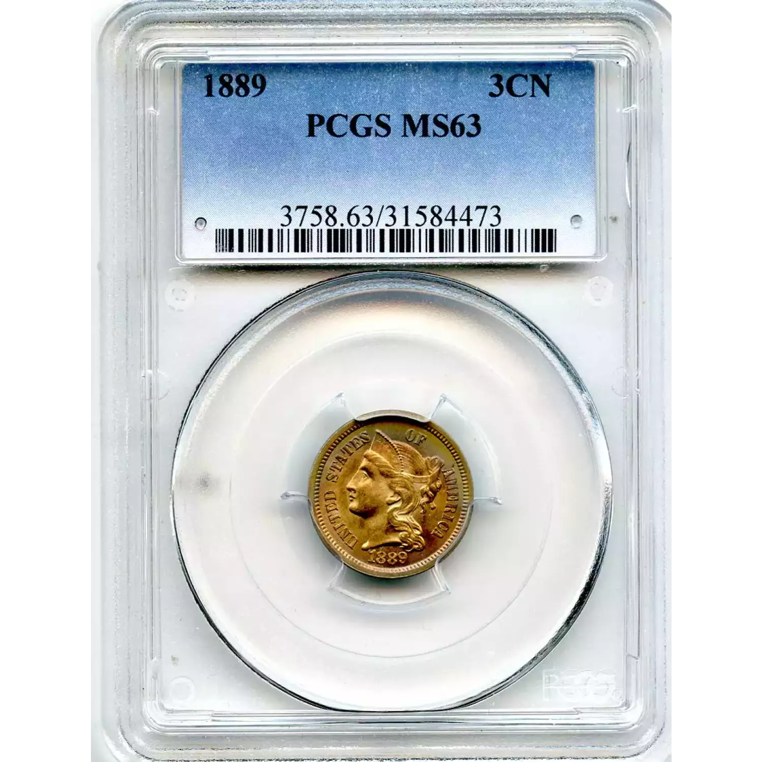 503229 | 1889-PR-64 Three Cent Pieces (Nickel) PCGS PR-64 | PCGS | PR-64 | Sold: 01/10/2005 | $375 |