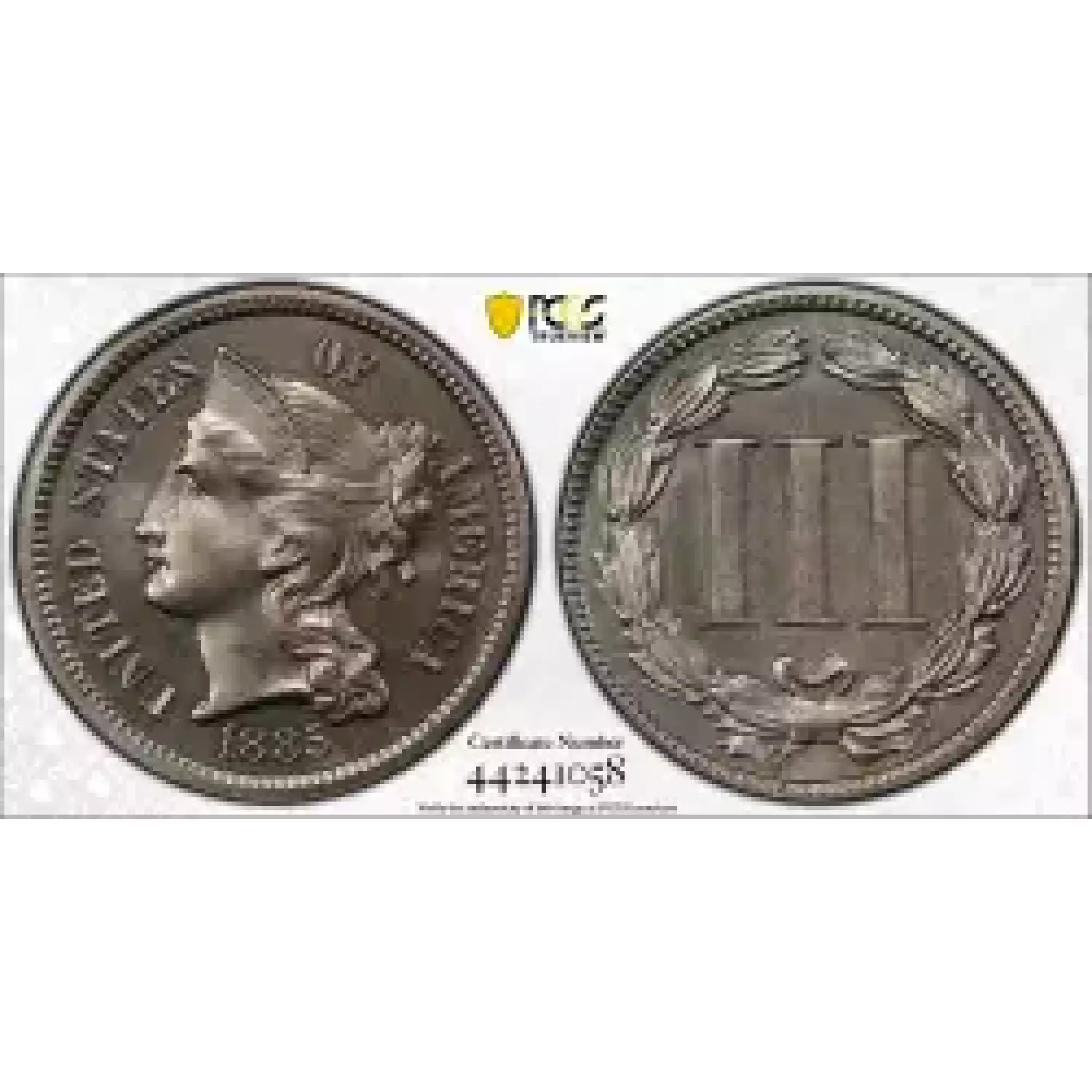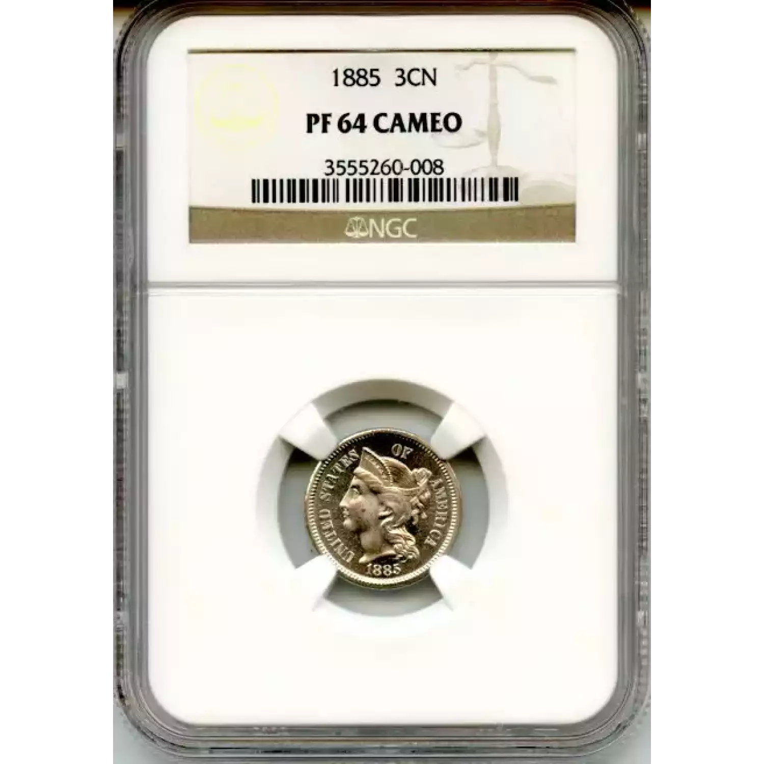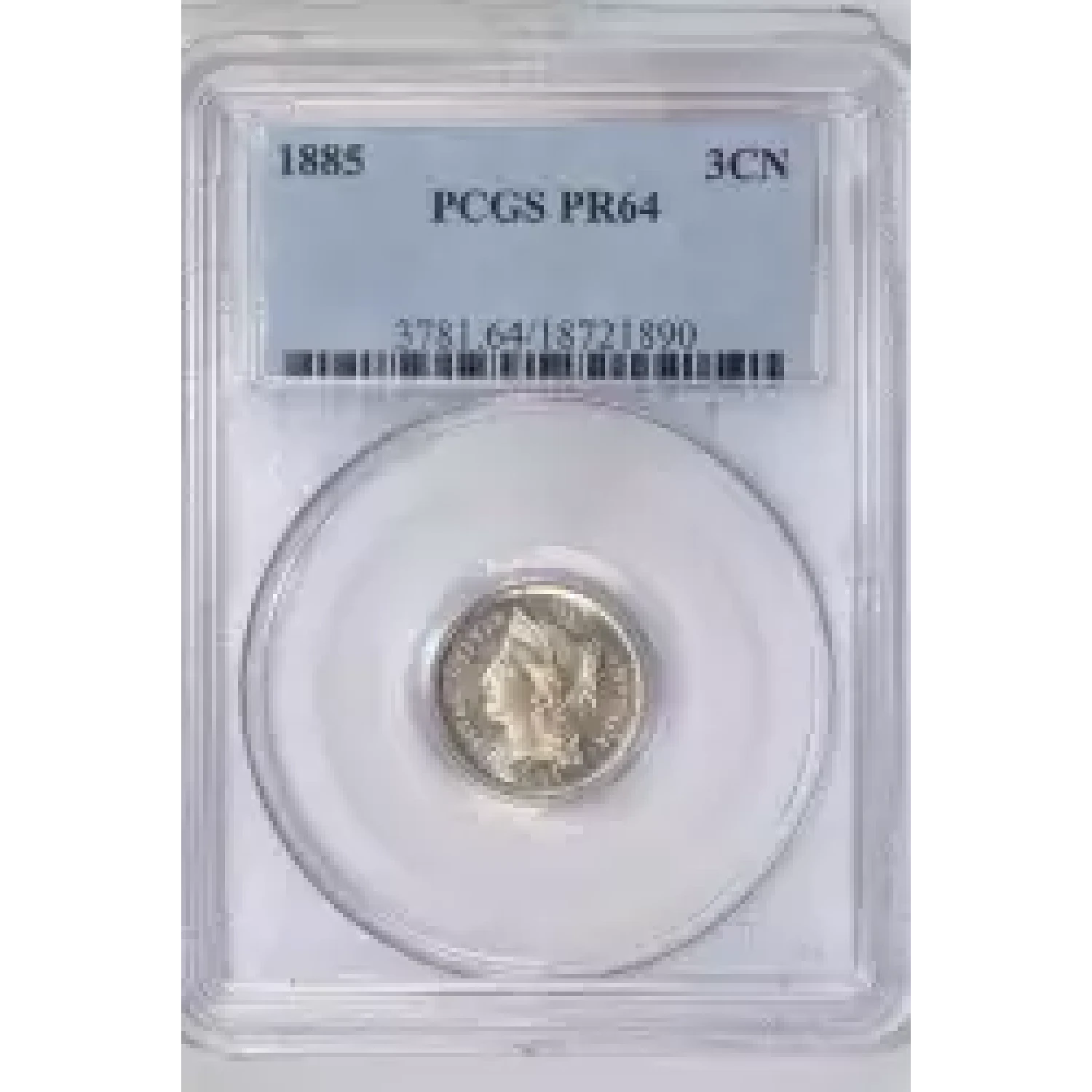 513098 | 1885-PR-64 Three Cent Pieces (Nickel) PCGS PR-64 | PCGS | PR-64 | Sold: 11/06/2019 | $450 |