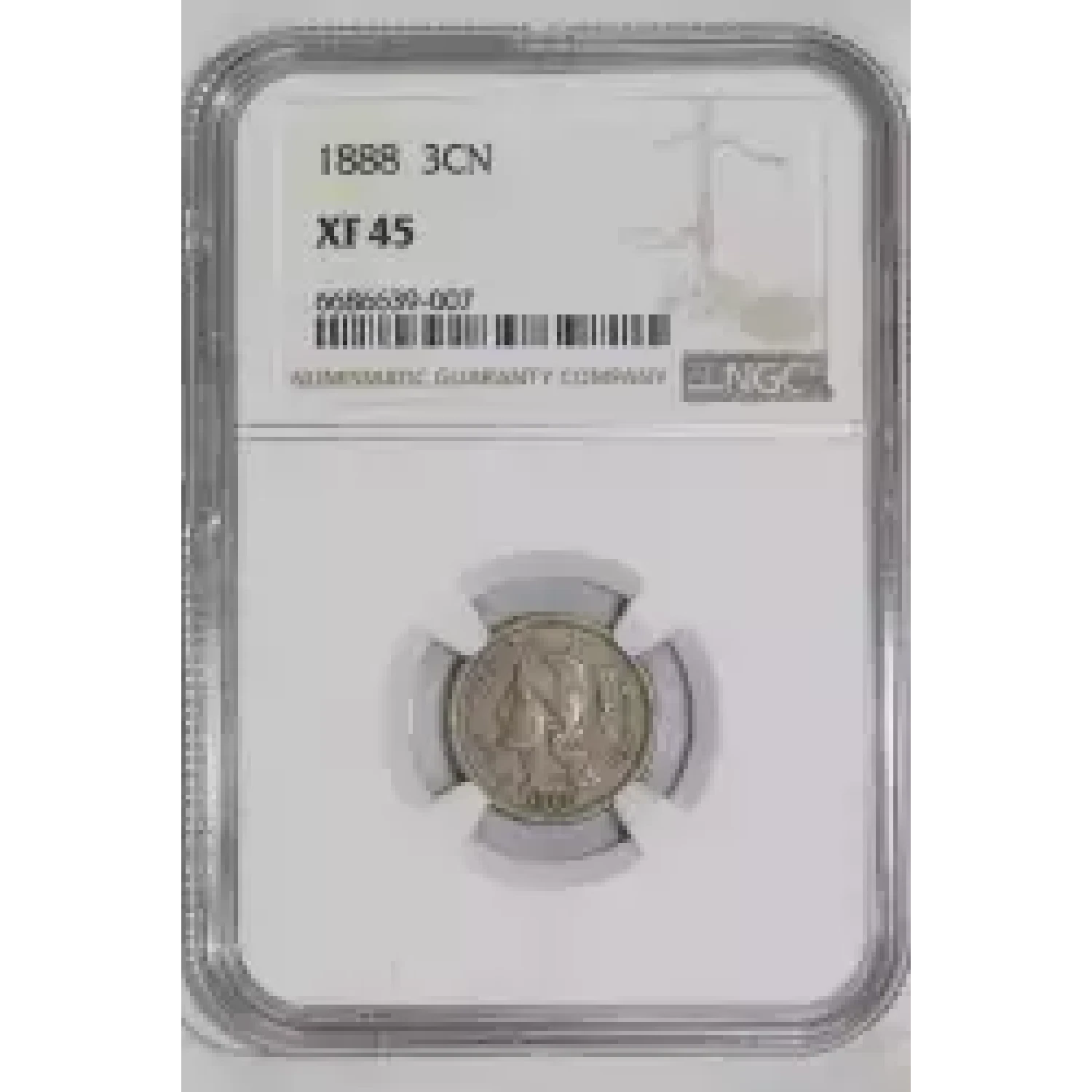 521541 | 1888 Three Cent Pieces (Nickel) NGC XF-45 | NGC | XF-45 | Sold: 28/03/2024 | $170 |