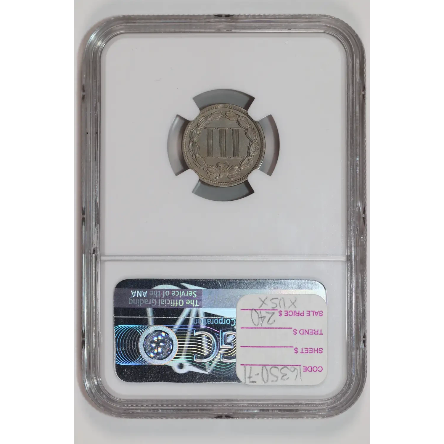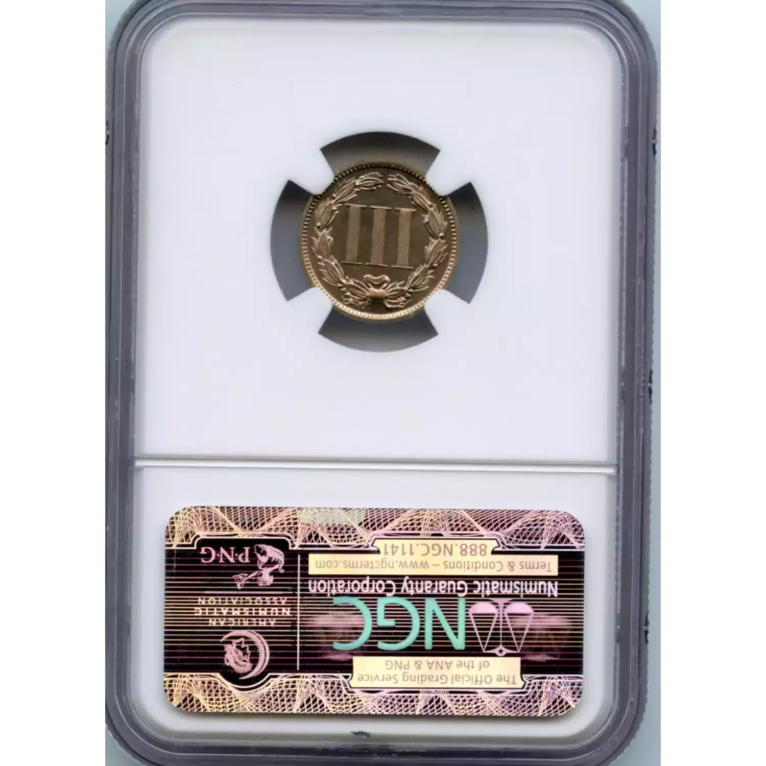 520367 | 1870 Three Cent Pieces (Nickel) NGC PF-64 | NGC | PF-64 | Sold: 31/10/2023 | $450 |