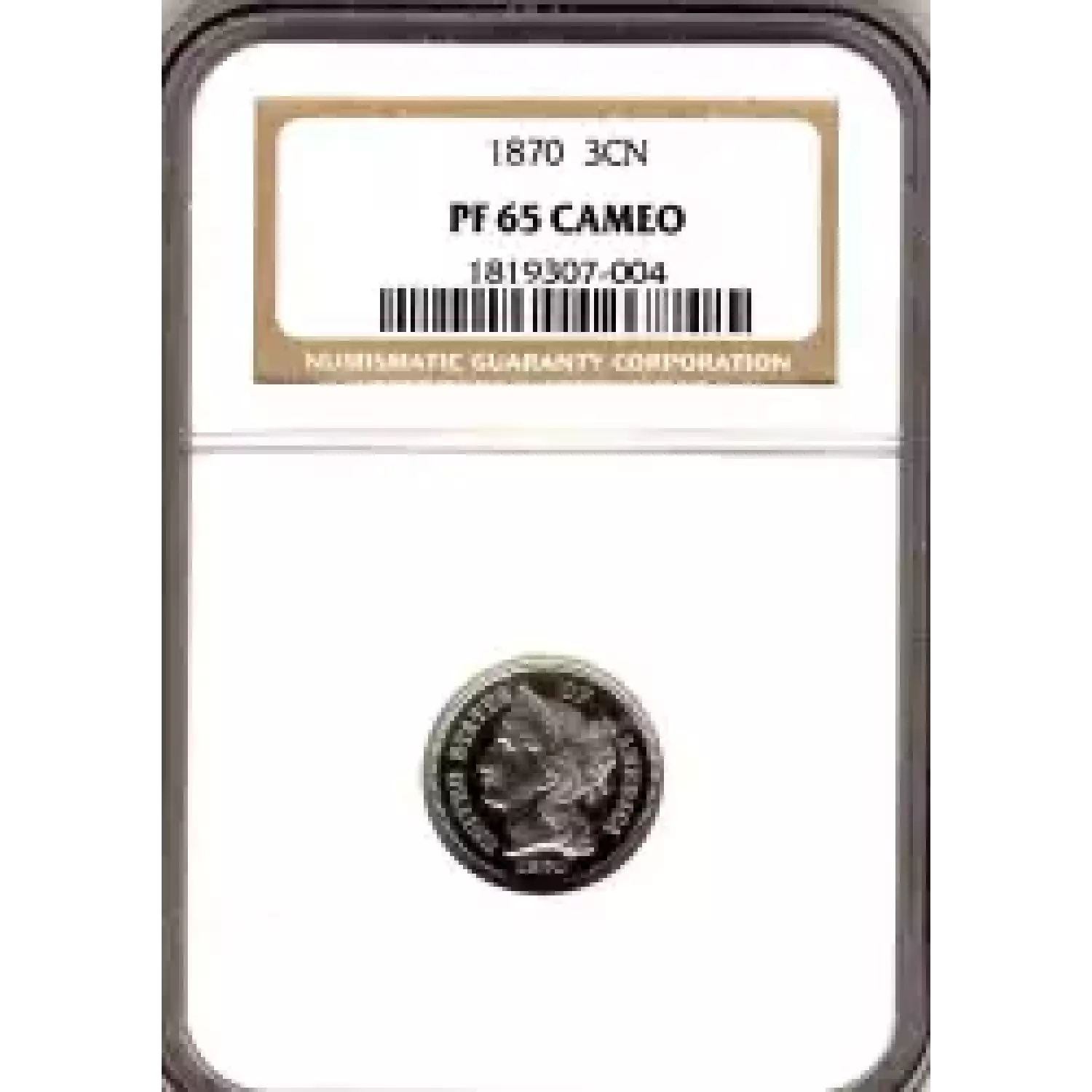 503504 | 1870-PF-65 Three Cent Pieces (Nickel) NGC PF-65 CAM | NGC | PF-65 | Sold: 17/08/2008 | $2,000 |