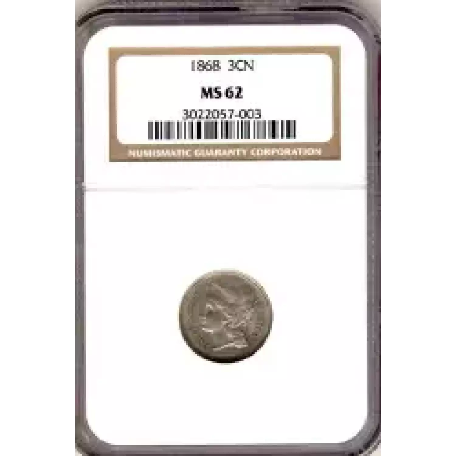 504175 | 1868-MS-62 Three Cent Pieces (Nickel) NGC MS-62 | NGC | MS-62 | Sold: 18/08/2007 | $100 |