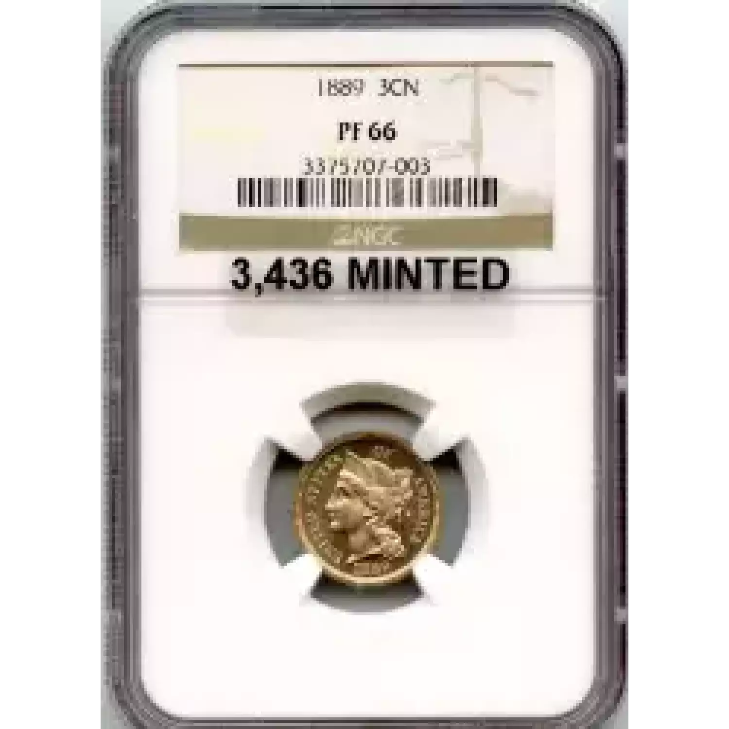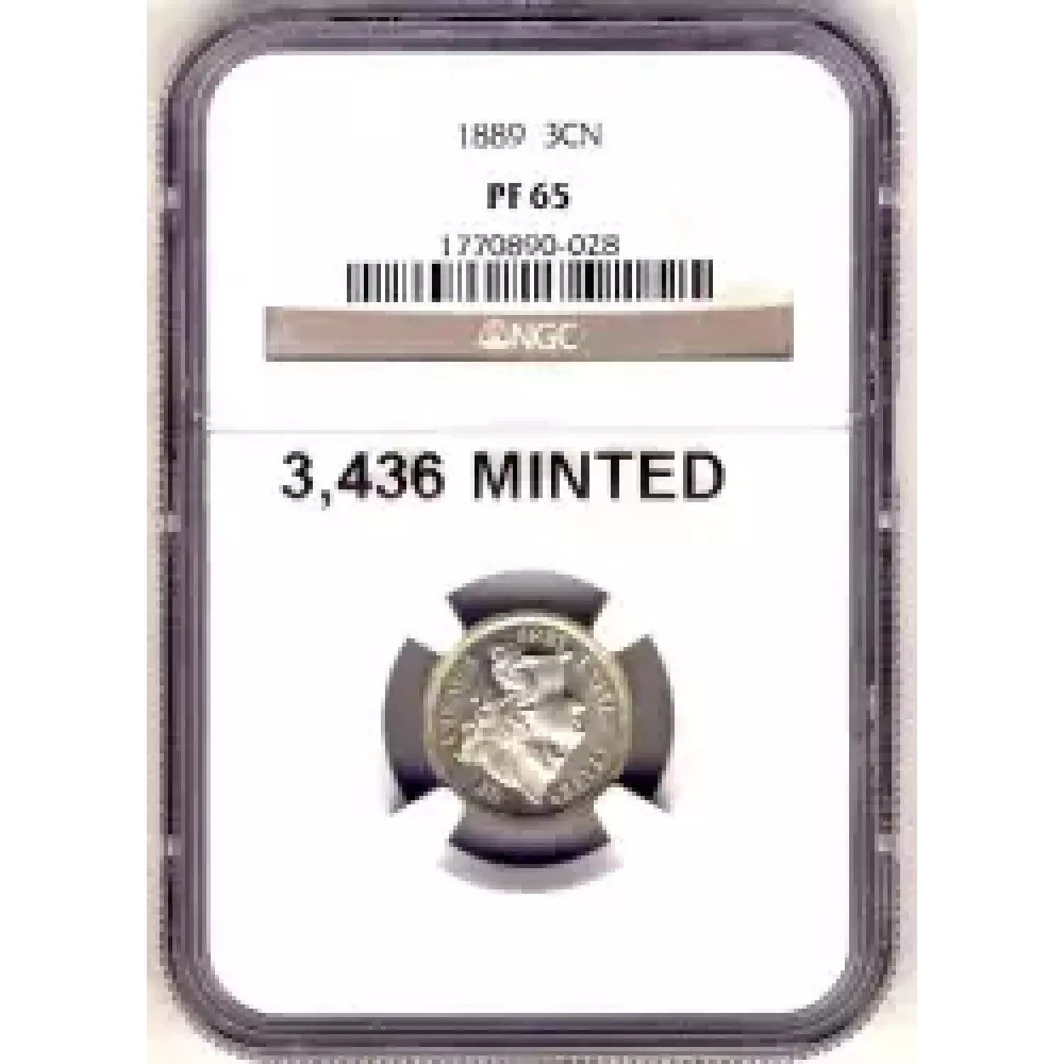 508373 | 1889-PF-66 Three Cent Pieces (Nickel) NGC PF-66 | NGC | PF-66 | Sold: 07/01/2020 | $450 |