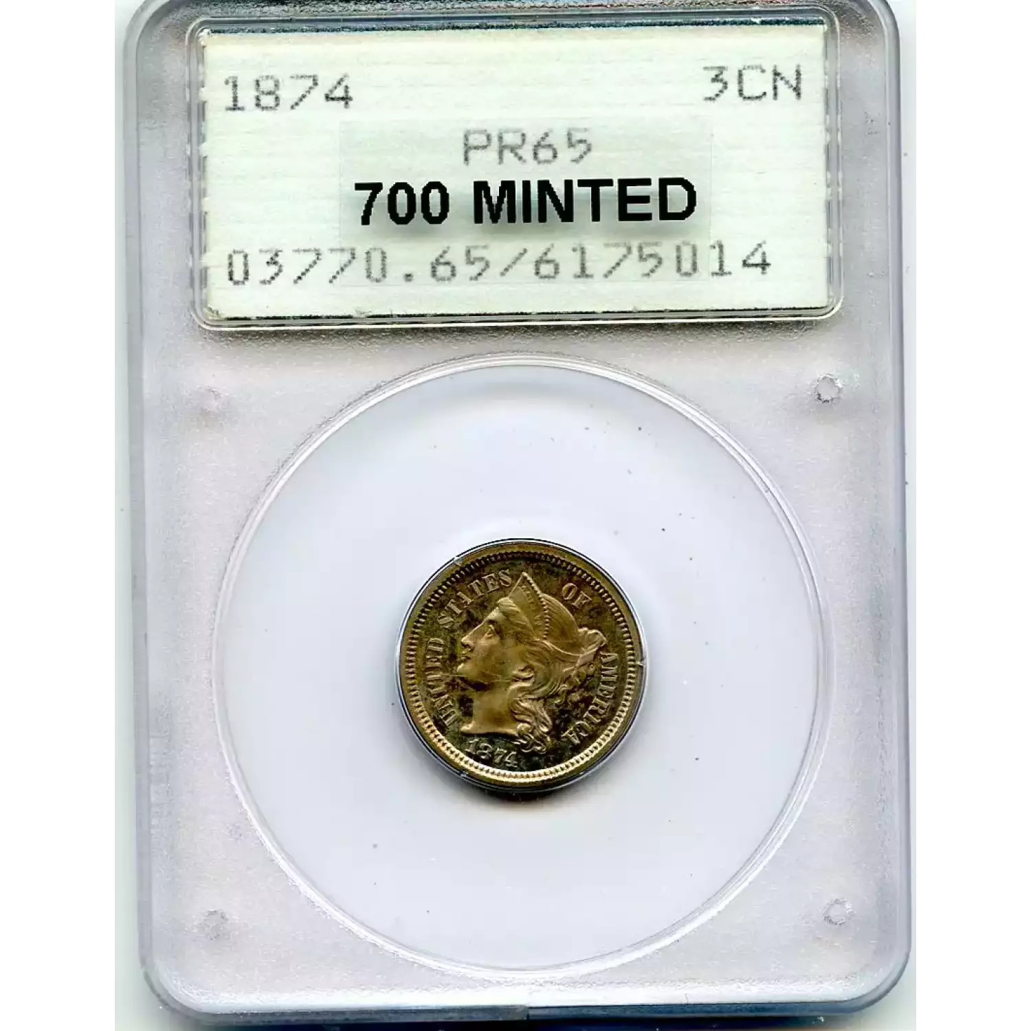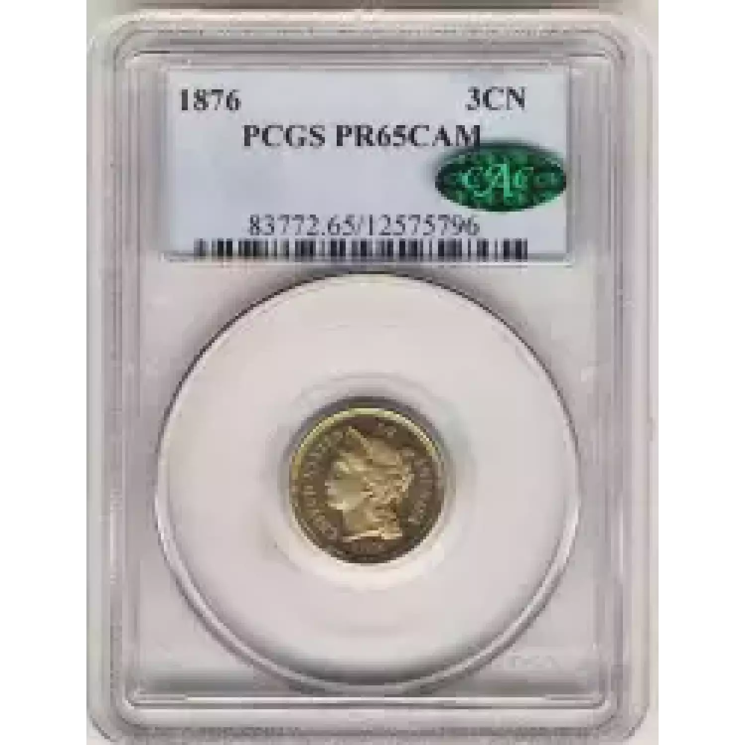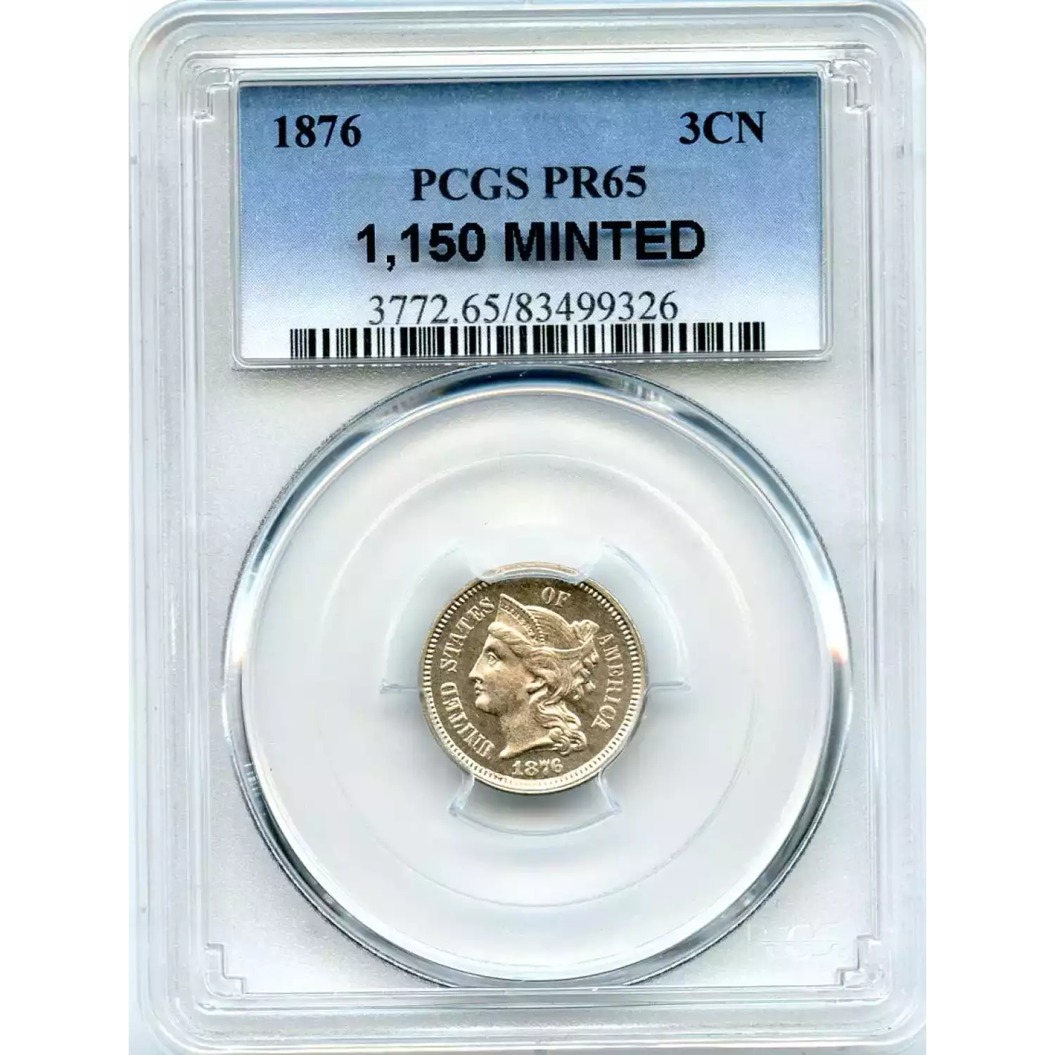 505889 | 1876-PR-65 Three Cent Pieces (Nickel) PCGS PR-65 CAM CAC | PCGS | PR-65 | Sold: 07/08/2012 | $900 |