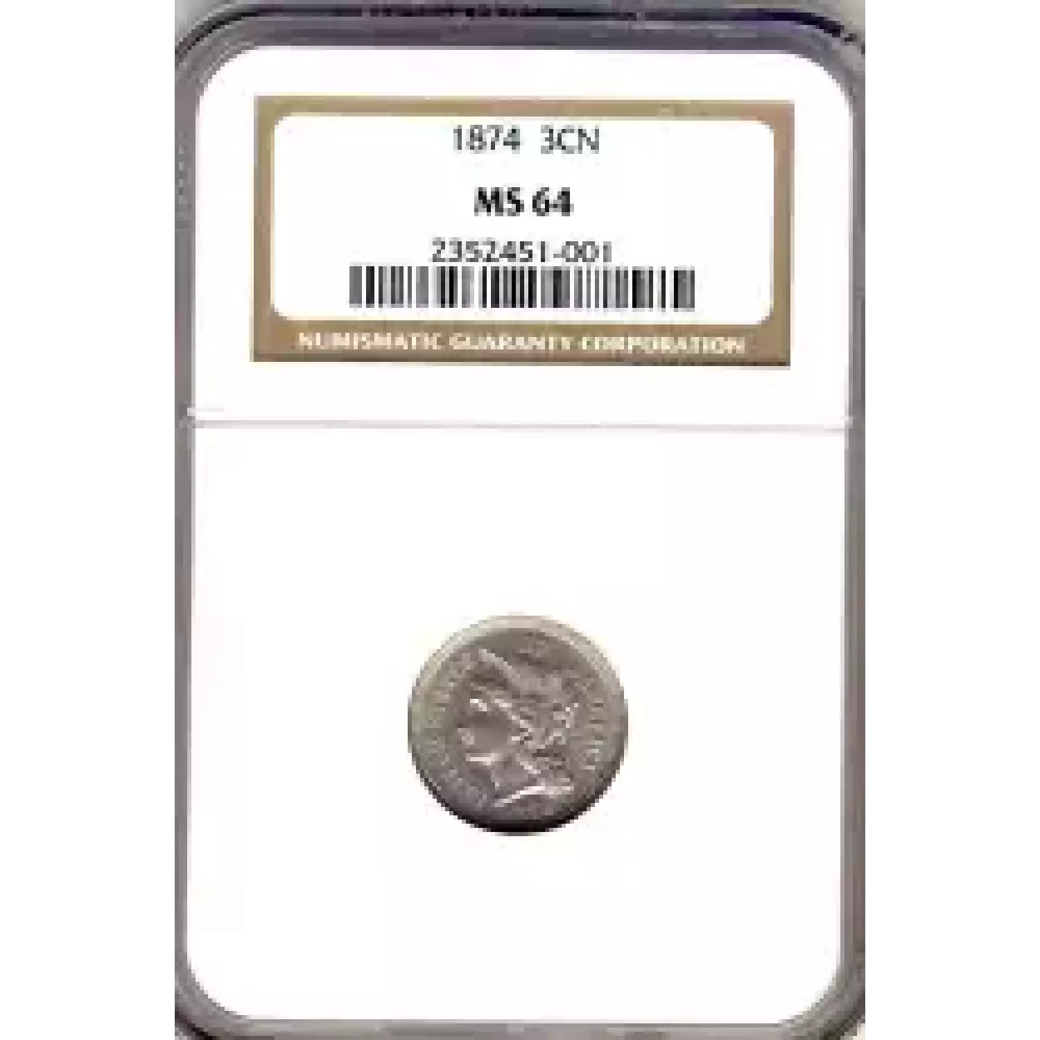 520383 | 1874 Three Cent Pieces (Nickel) NGC MS-64 | NGC | MS-64 | Sold: 07/11/2023 | $425 |