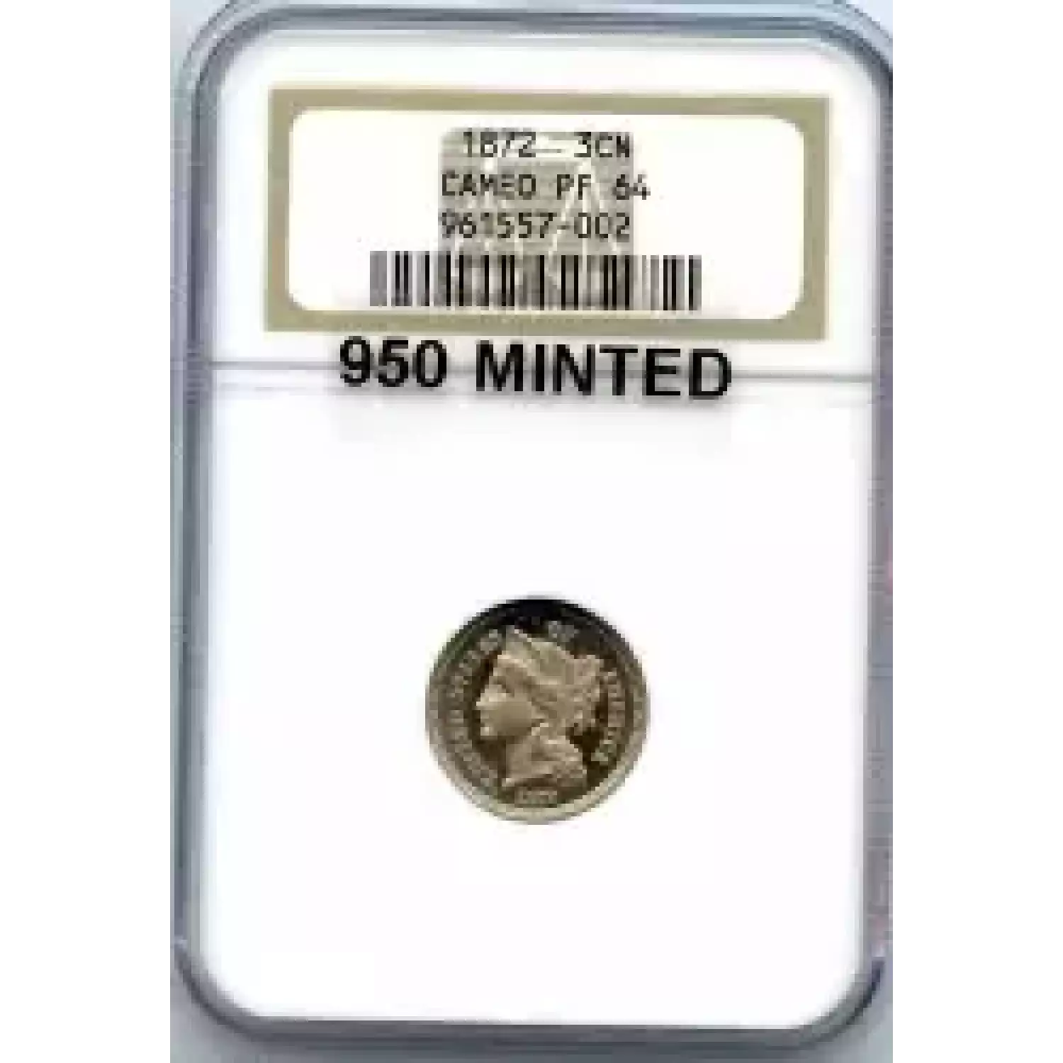 534748 | 1878 Three Cent Pieces (Nickel) NGC PF-61 | NGC | PF-61 | Sold: 05/09/2025 | $725 |