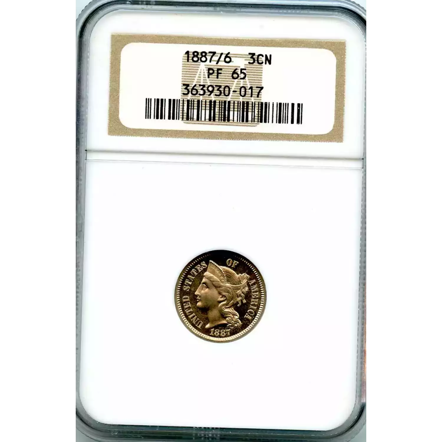 507462 | 1887/6-PF-65 Three Cent Pieces (Nickel) NGC PF-65 | NGC | PF-65 | Sold: 10/08/2014 | $850 |