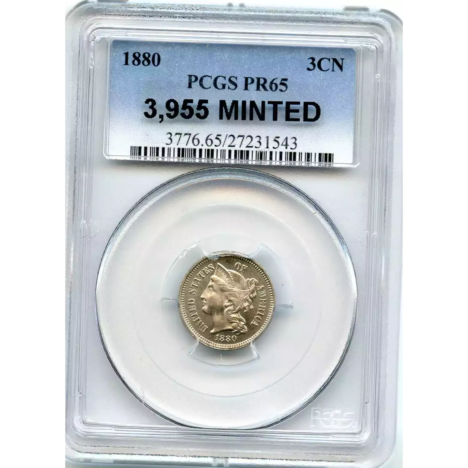 507519 | 1880-PR-65 Three Cent Pieces (Nickel) PCGS PR-65 | PCGS | PR-65 | Sold: 04/10/2015 | $410 |