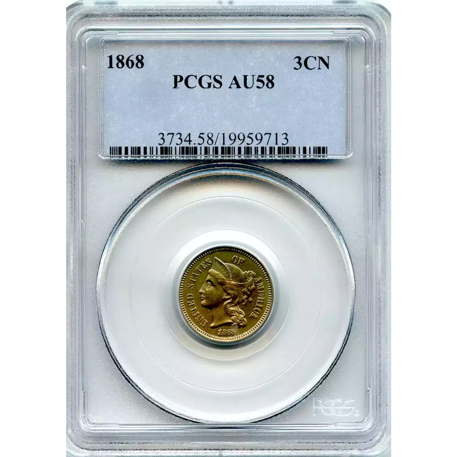 507648 | 1868-AU-58 Three Cent Pieces (Nickel) PCGS AU-58 | PCGS | AU-58 | Sold: 20/07/2014 | $100 |