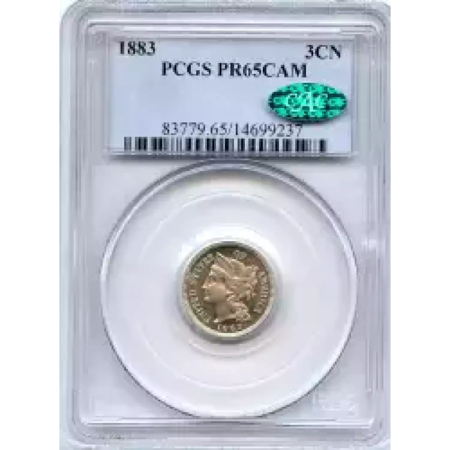 507728 | 1883-PR-65 Three Cent Pieces (Nickel) PCGS PR-65 CAM CAC | PCGS | PR-65 | Sold: 07/12/2014 | $500 |