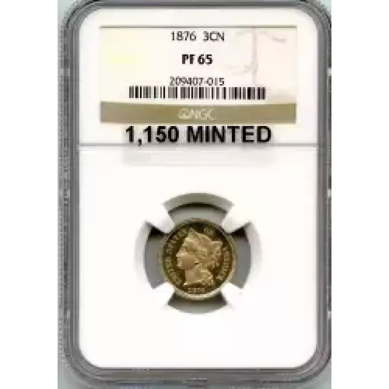520370 | 1876 Three Cent Pieces (Nickel) NGC PF-65 | NGC | PF-65 | Sold: 31/10/2023 | $700 |