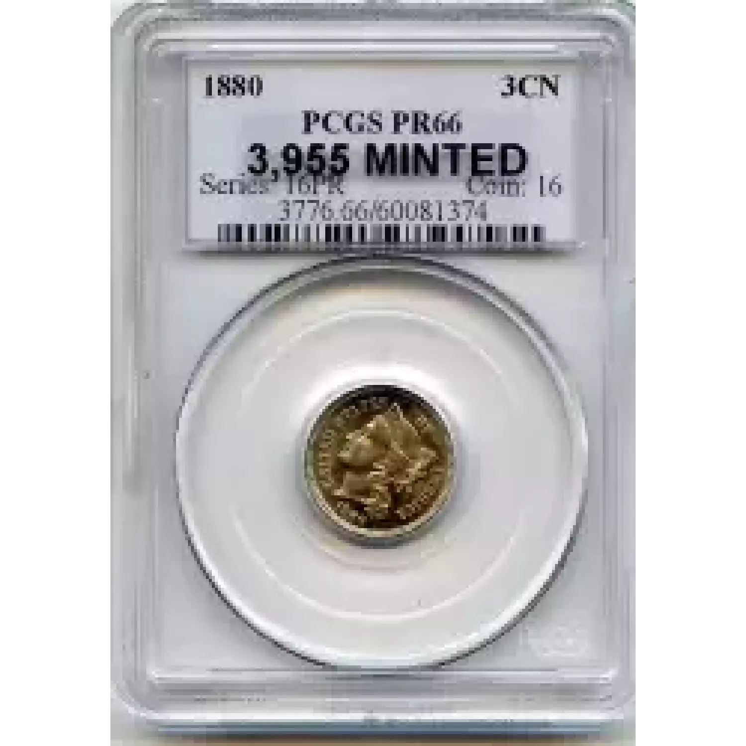 508071 | 1880-PR-66 Three Cent Pieces (Nickel) PCGS PR-66 | PCGS | PR-66 | Sold: 07/09/2015 | $551 |