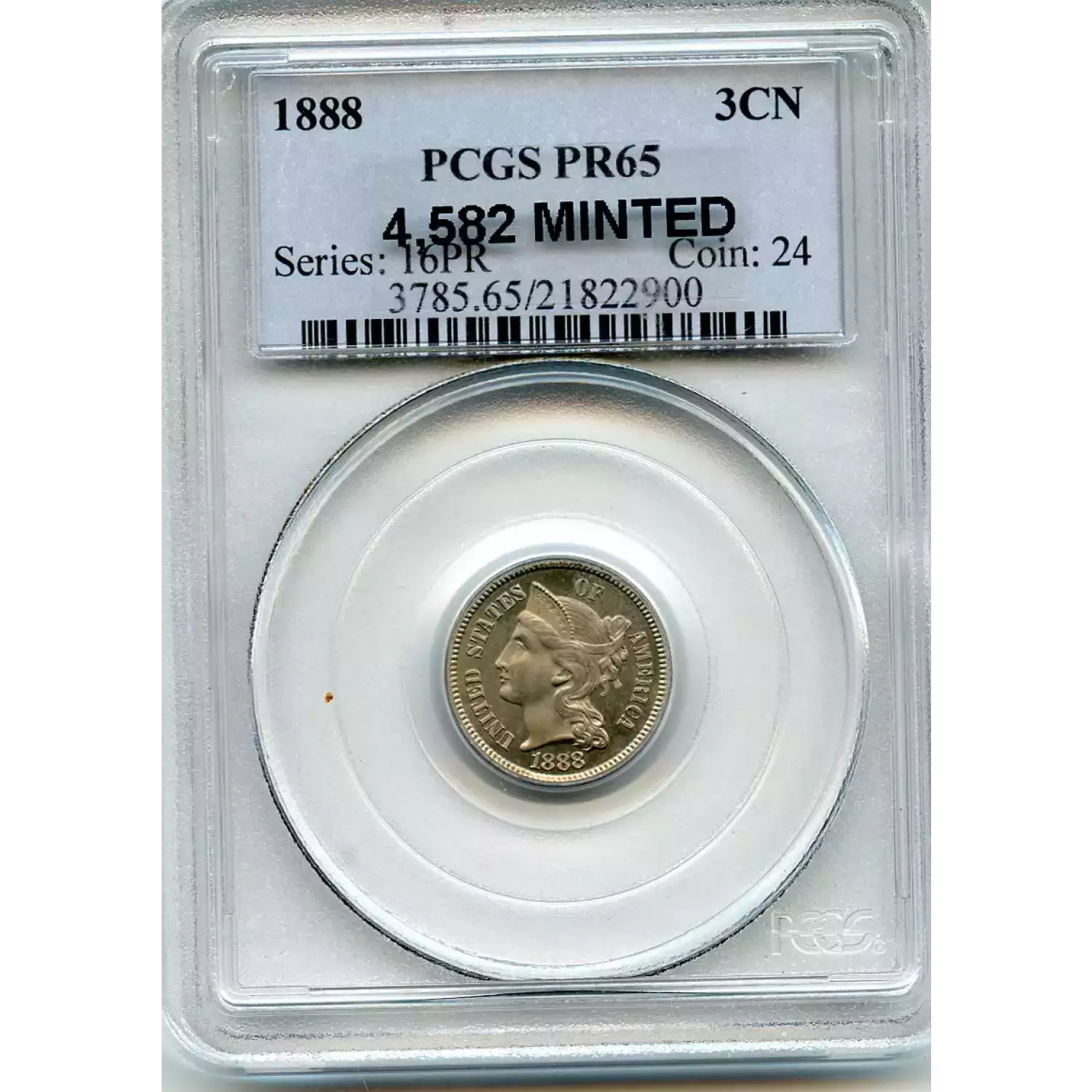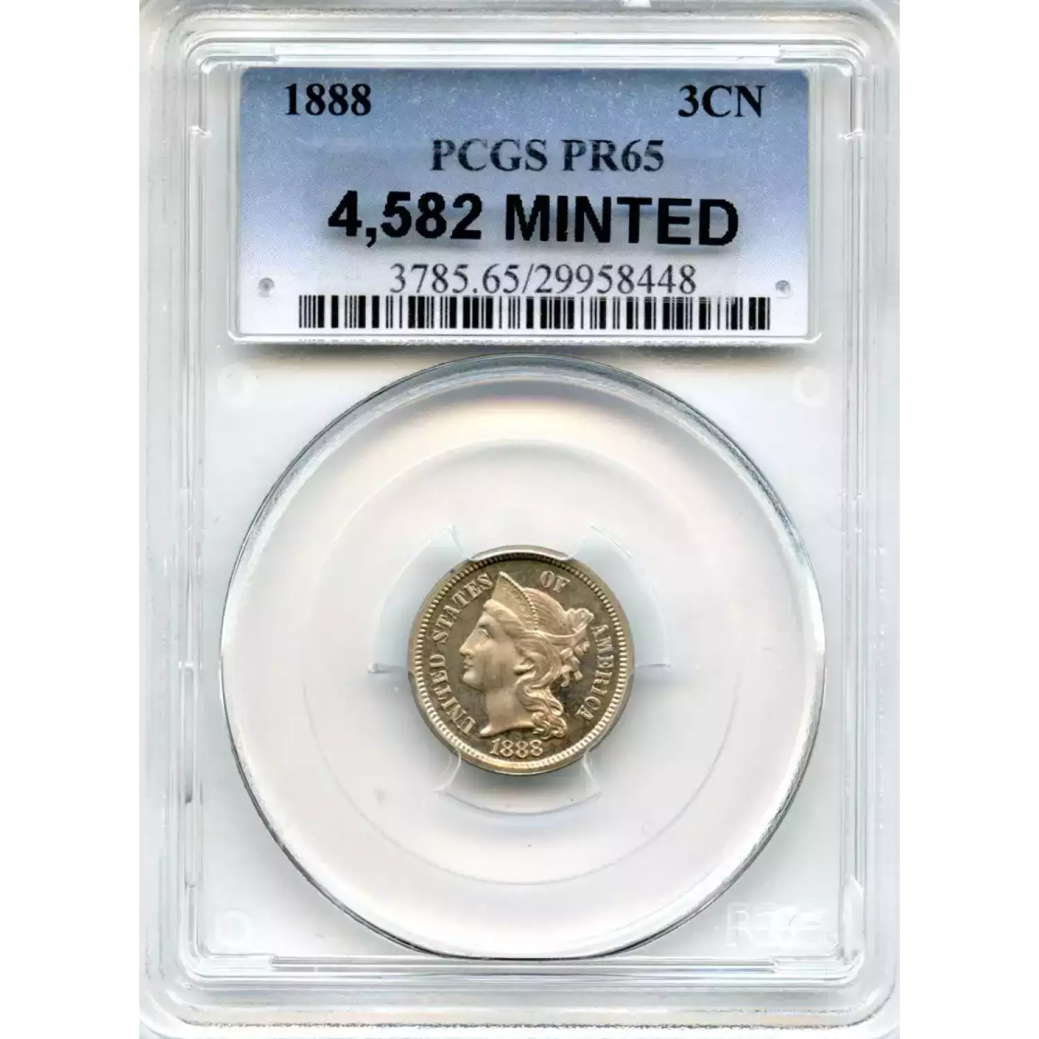 508333 | 1888-PR-65 Three Cent Pieces (Nickel) PCGS PR-65 | PCGS | PR-65 | Sold: 09/03/2016 | $517.50 |