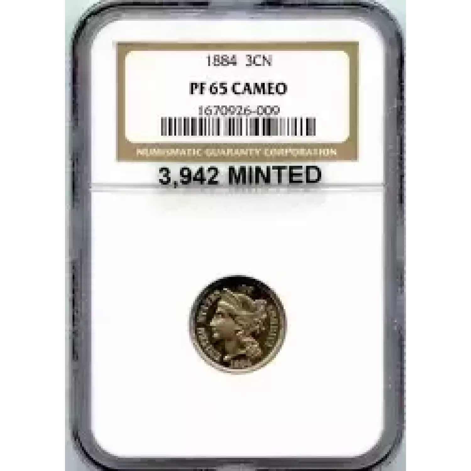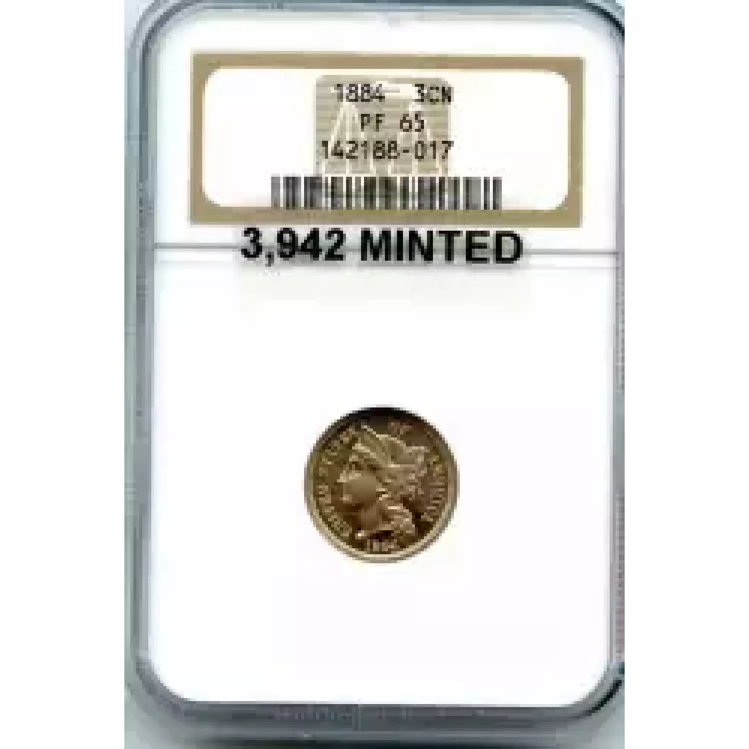 509835 | 1884-PF-65 Three Cent Pieces (Nickel) NGC PF-65 CAM | NGC | PF-65 | Sold: 05/03/2017 | $575 |