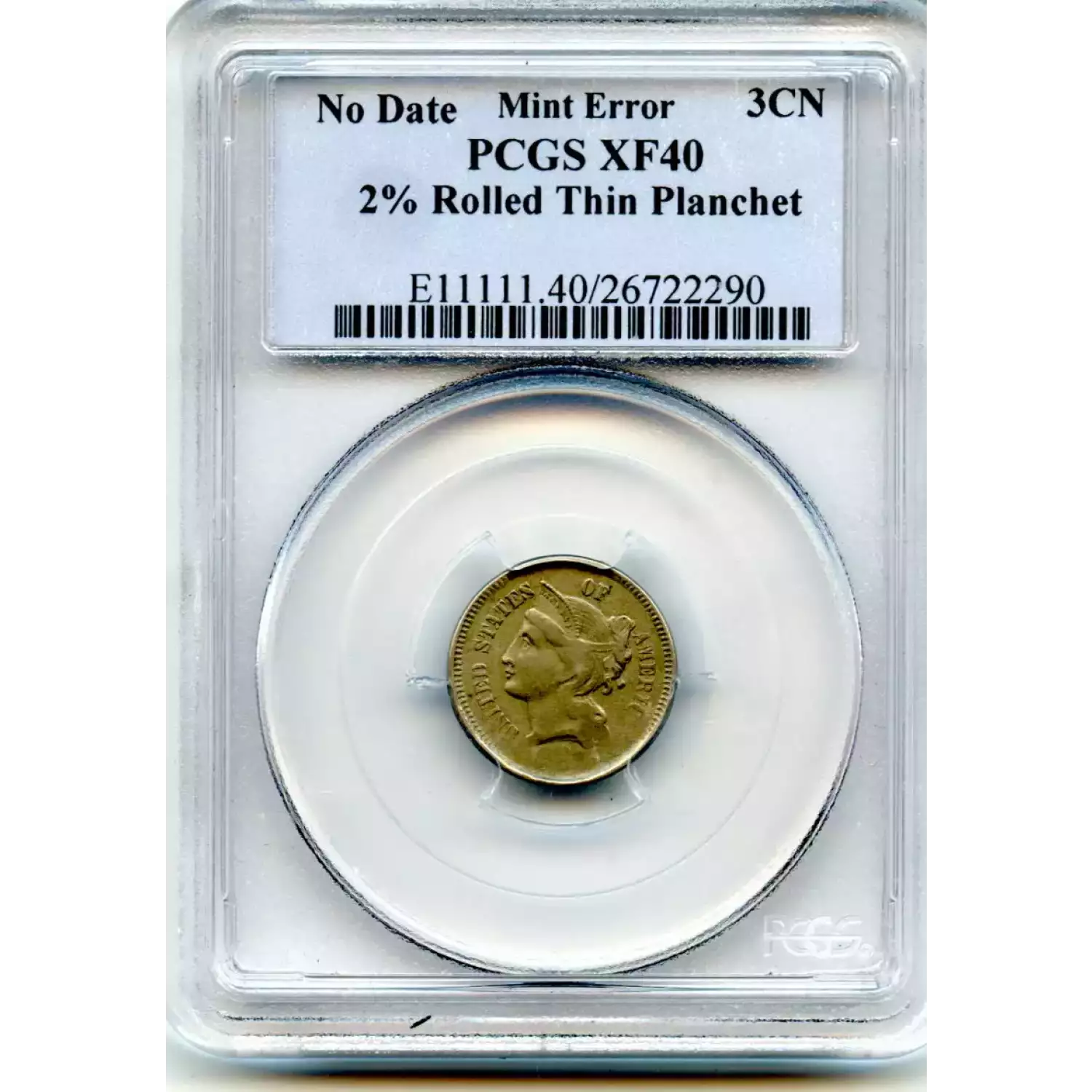 508771 | No Date-XF-40 Three Cent Pieces (Nickel) PCGS XF-40 | PCGS | XF-40 | Sold: 10/06/2018 | $150 |