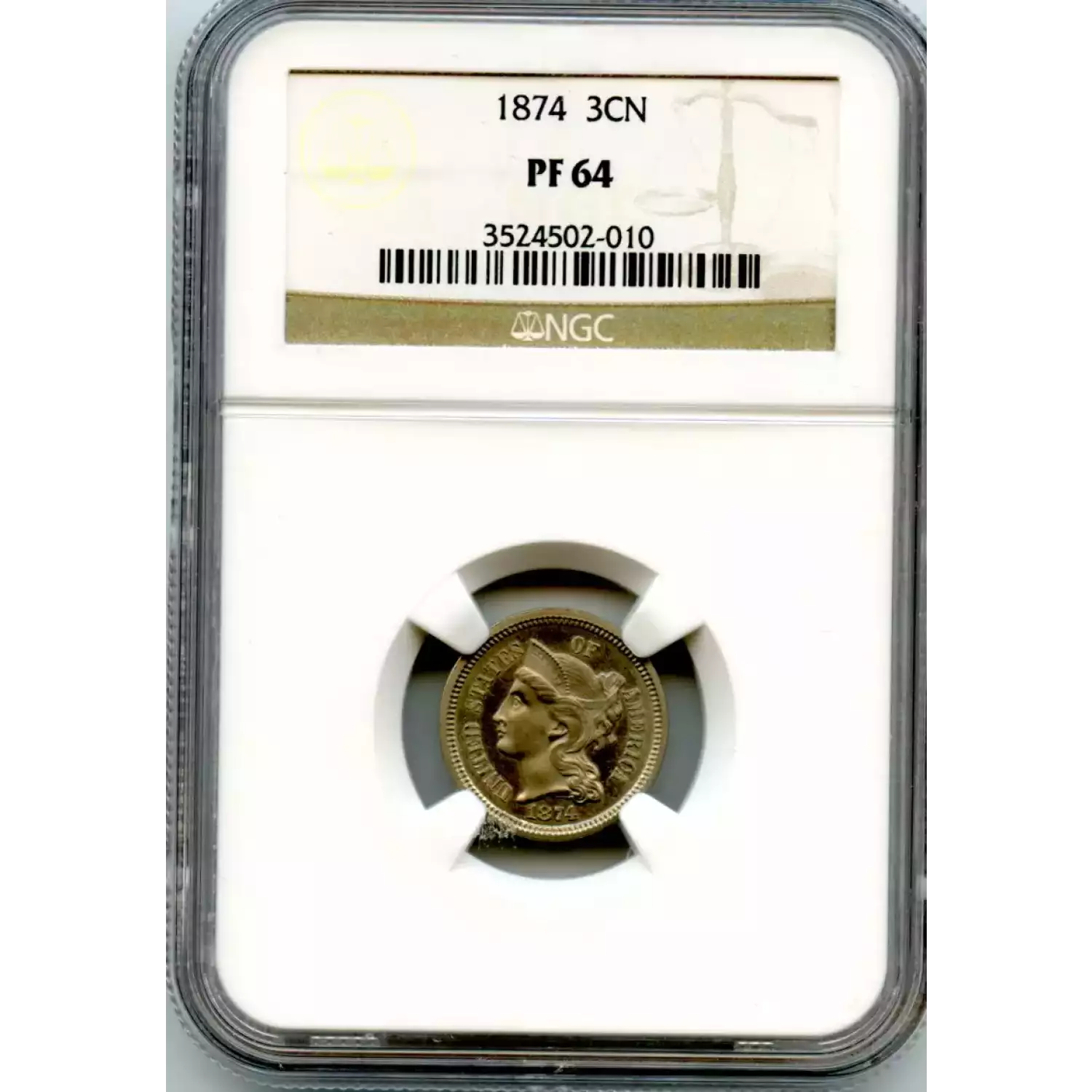 520369 | 1874 Three Cent Pieces (Nickel) NGC PF-64 | NGC | PF-64 | Sold: 31/10/2023 | $435 |