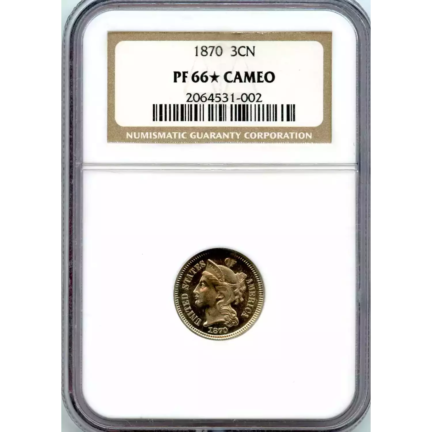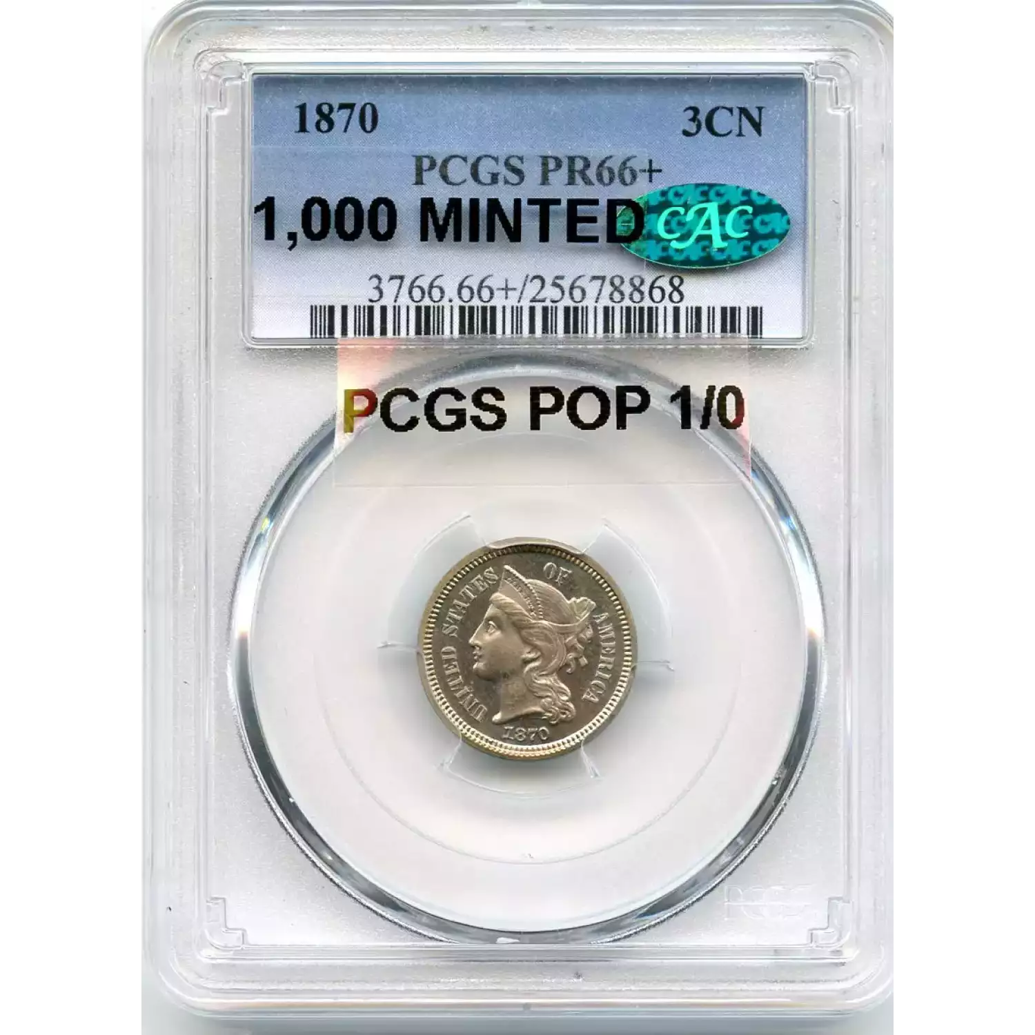 514092 | 1870-PR-66 Three Cent Pieces (Nickel) NGC PR-66 CAM | NGC | PR-66 | Sold: 15/09/2020 | $1,025 |