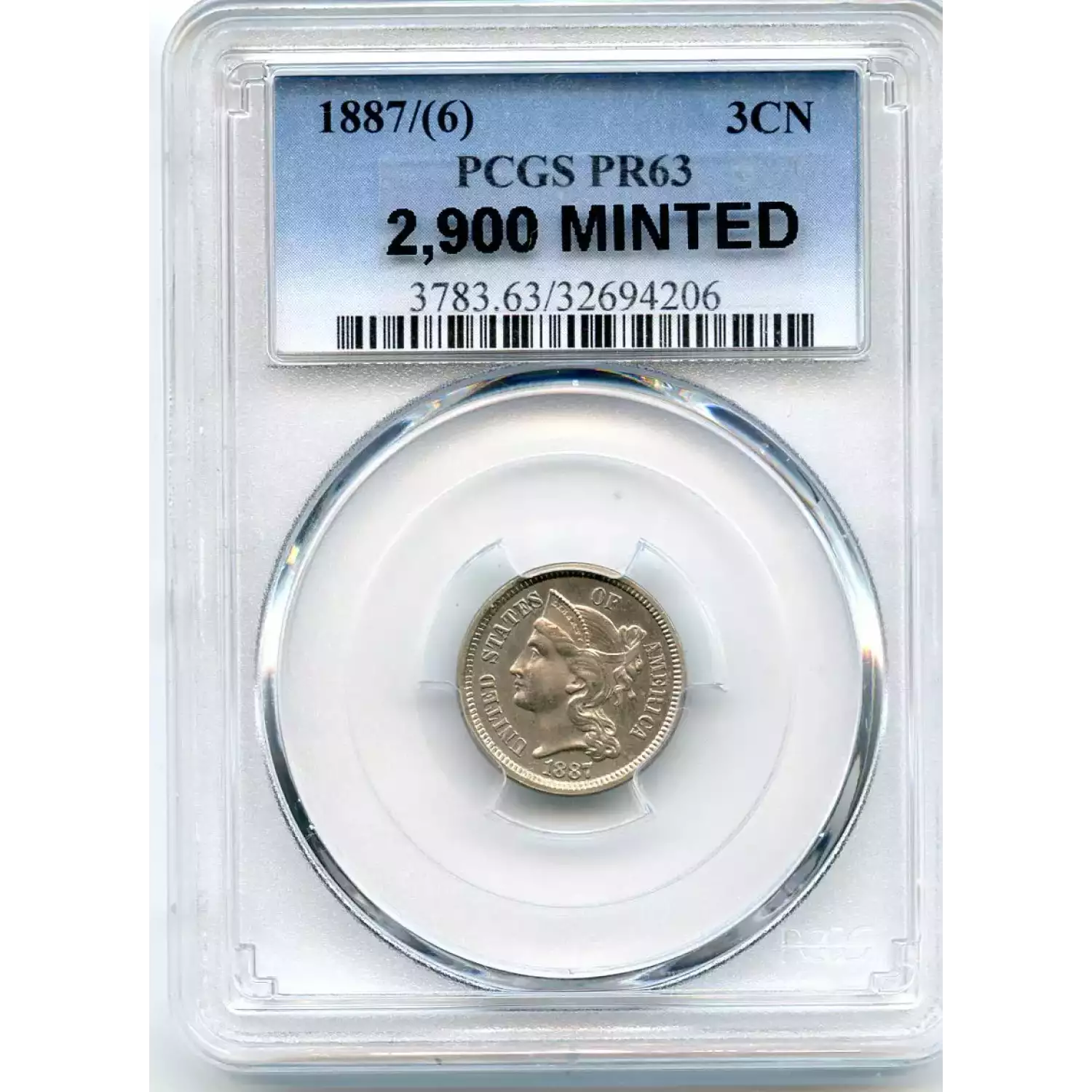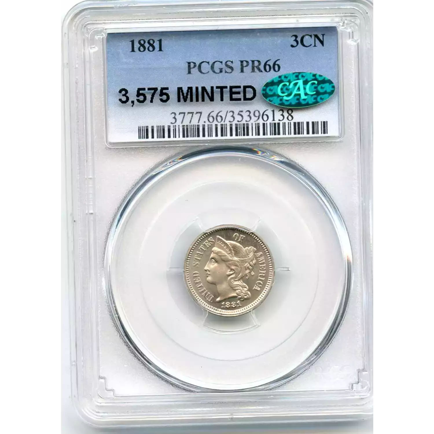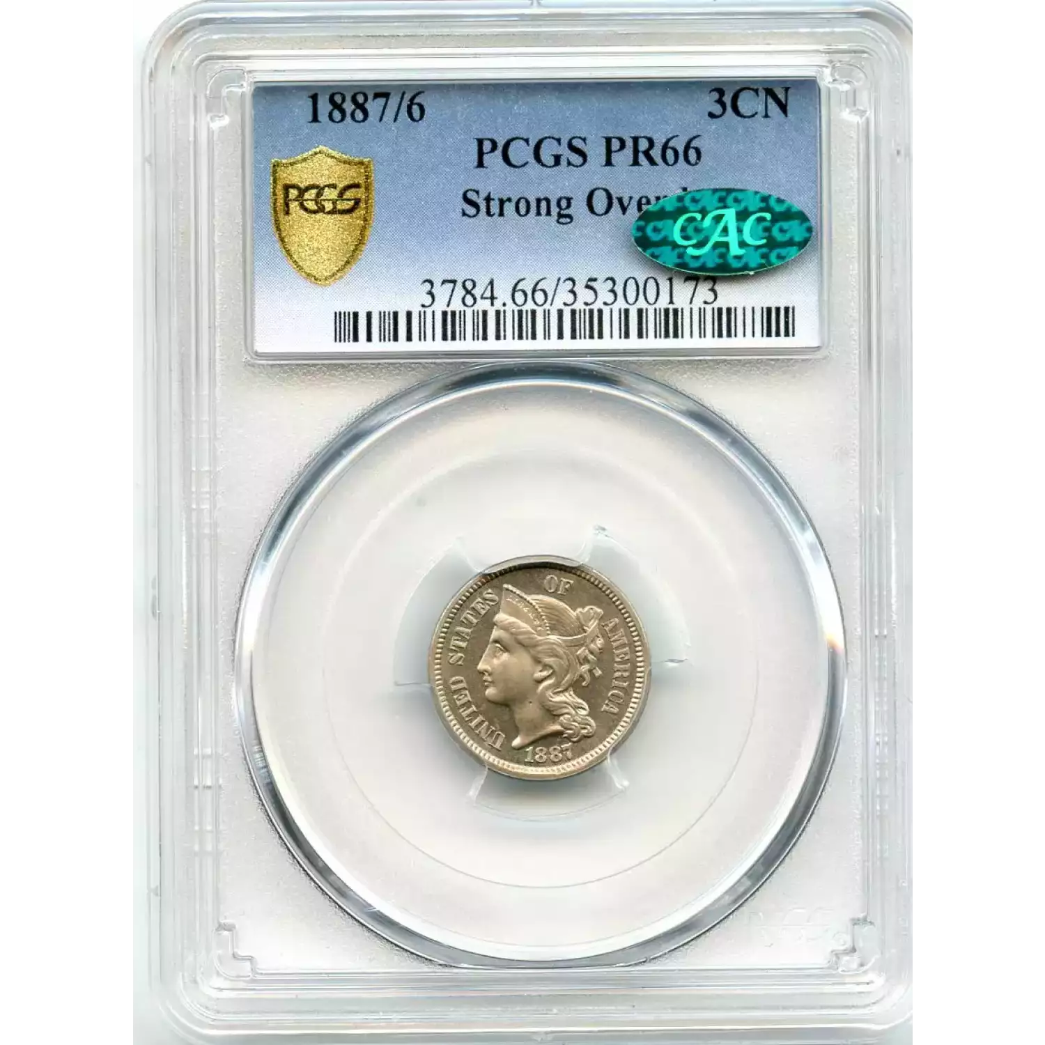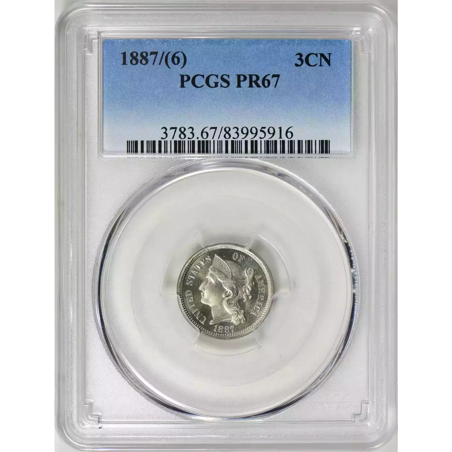 511906 | 1887/6-PR-66 Three Cent Pieces (Nickel) PCGS PR-66 CAC | PCGS | PR-66 | Sold: 10/11/2018 | $887 |