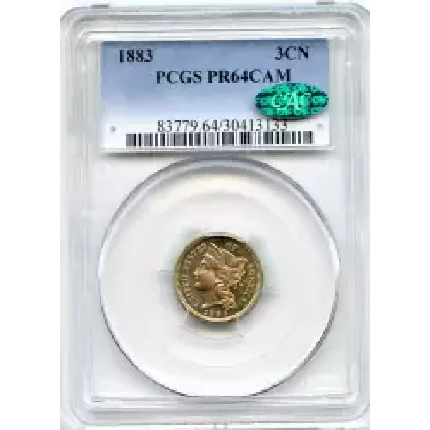 509662 | 1883-PR-64 Three Cent Pieces (Nickel) PCGS PR-64 CAM CAC | PCGS | PR-64 | Sold: 05/06/2016 | $375 |
