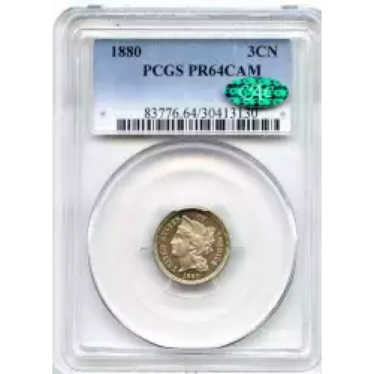 507463 | 1880-PF-67 Three Cent Pieces (Nickel) NGC PF-67 CAM | NGC | PF-67 | Sold: 04/05/2014 | $1,800 |