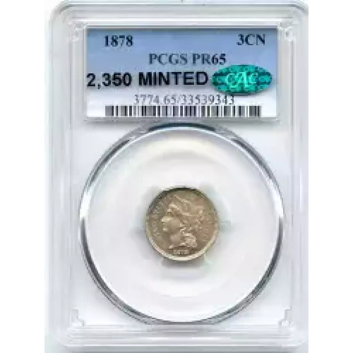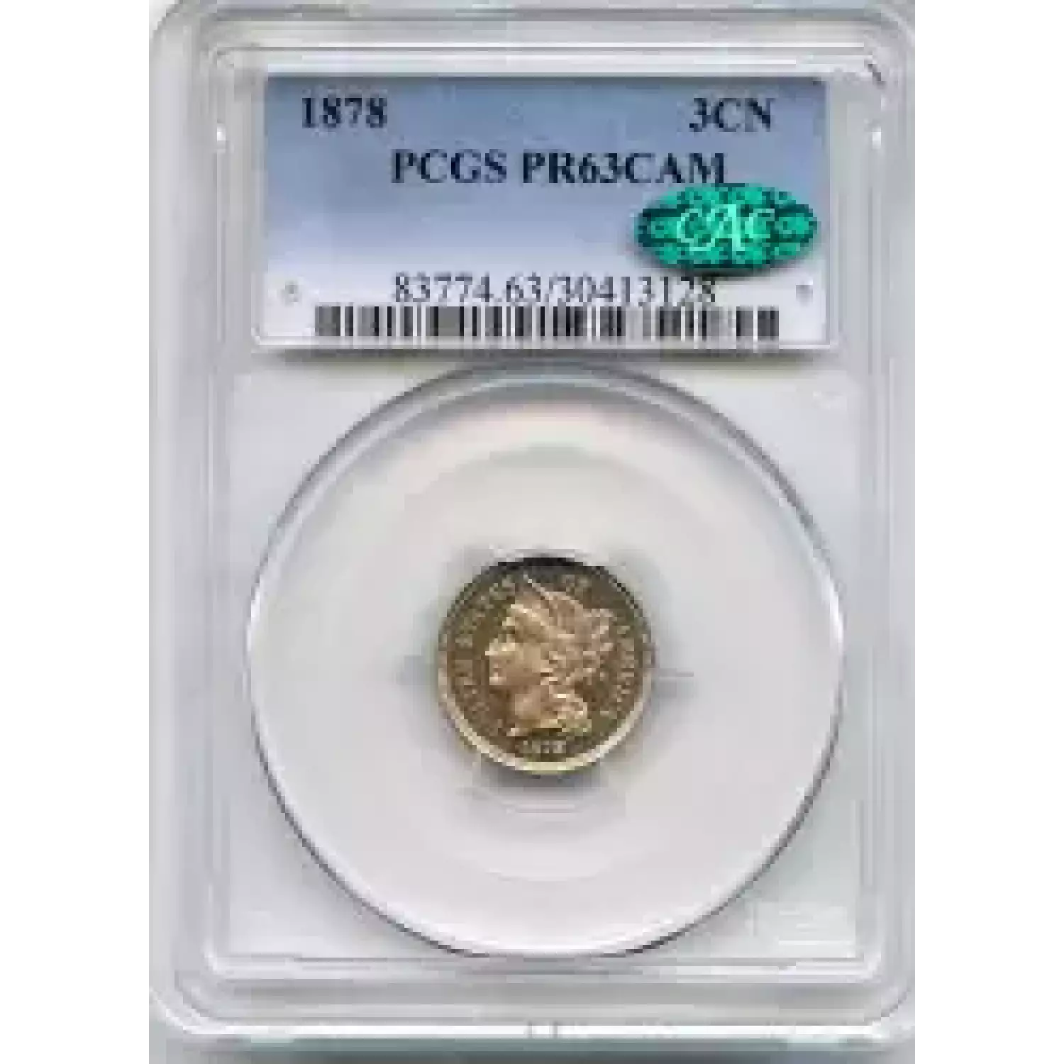 509668 | 1878-PR-63 Three Cent Pieces (Nickel) PCGS PR-63 CAM CAC | PCGS | PR-63 | Sold: 05/06/2016 | $650 |