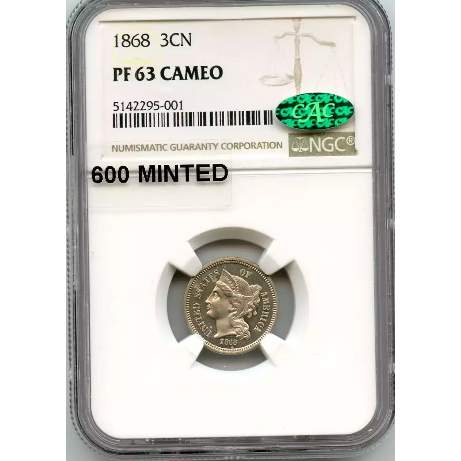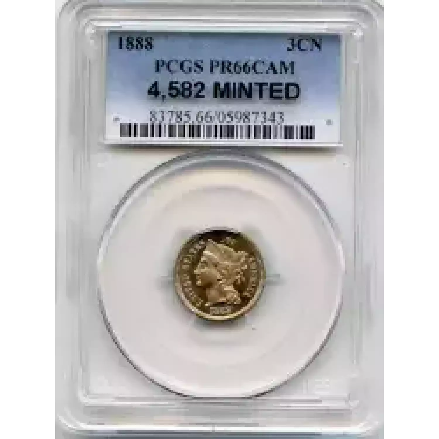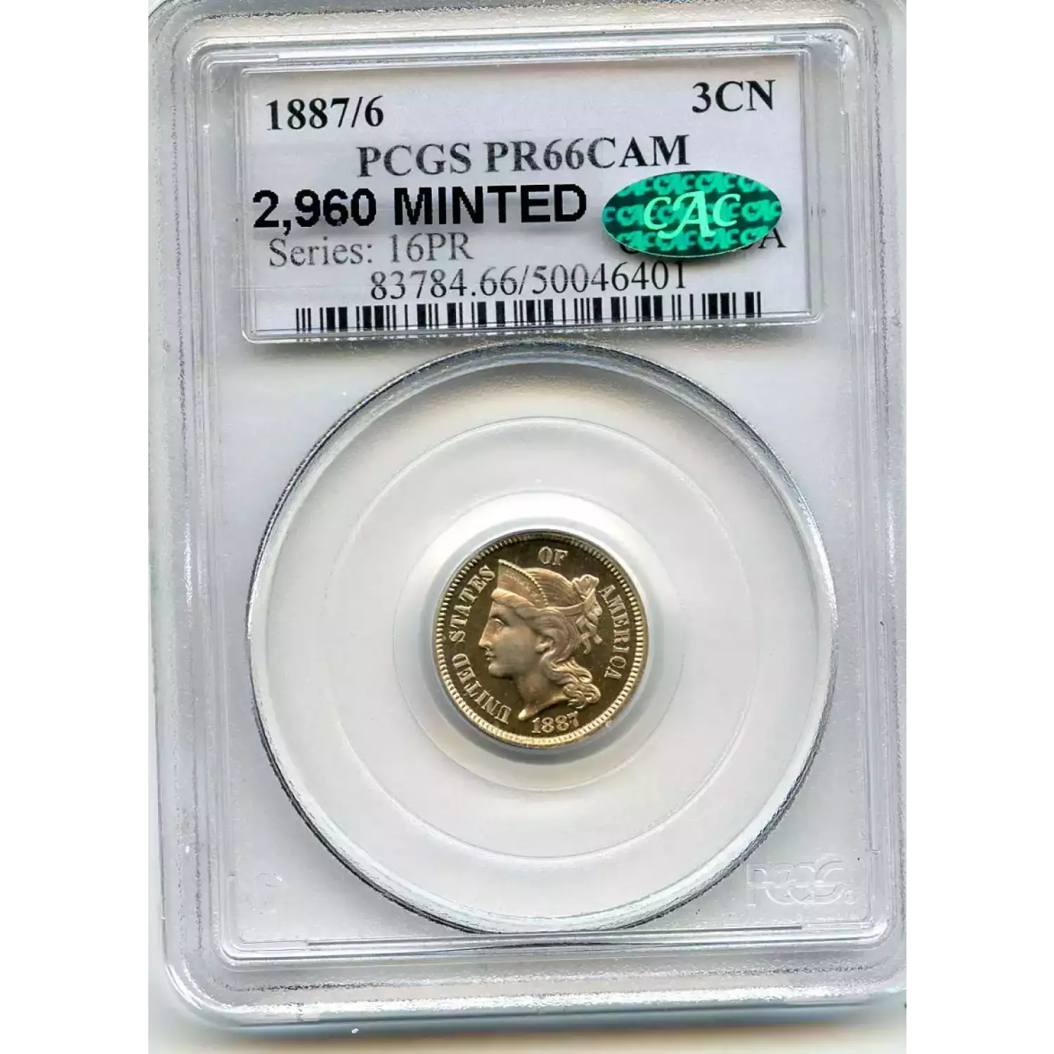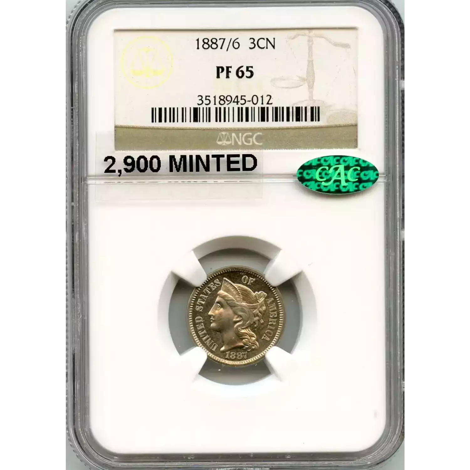 512377 | 1887/6-PR-66 Three Cent Pieces (Nickel) PCGS PR-66 CAM CAC | PCGS | PR-66 | Sold: 16/12/2018 | $1,000 |