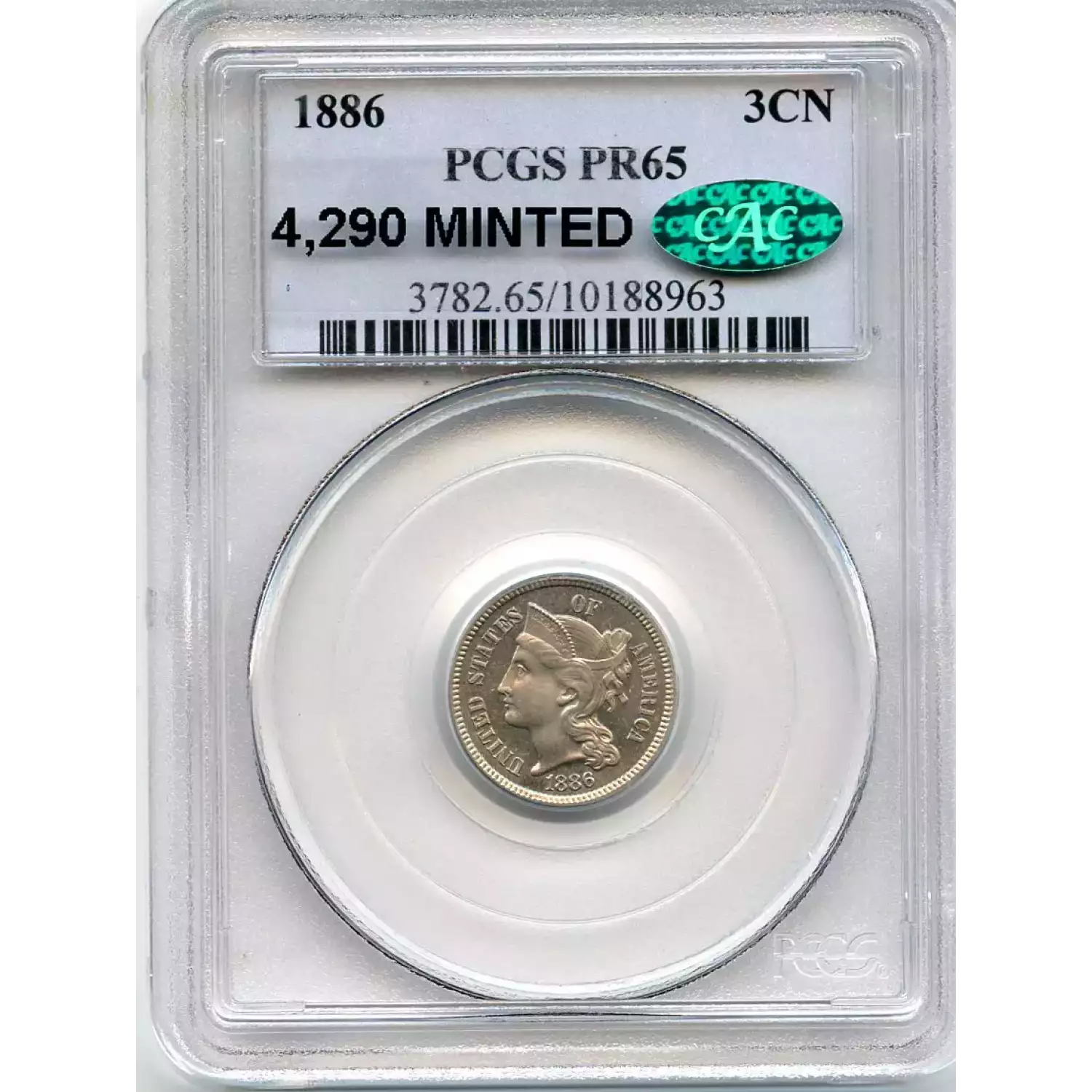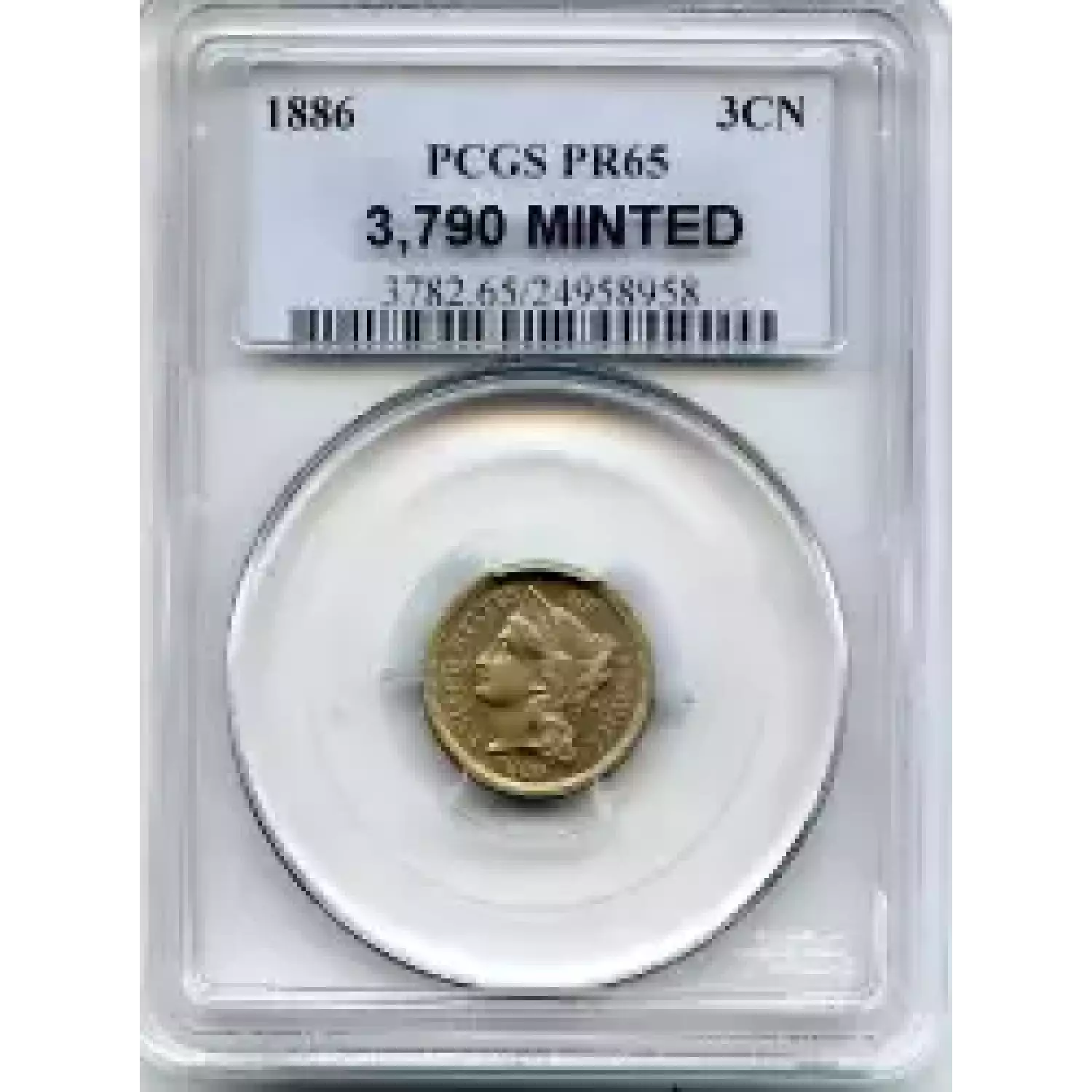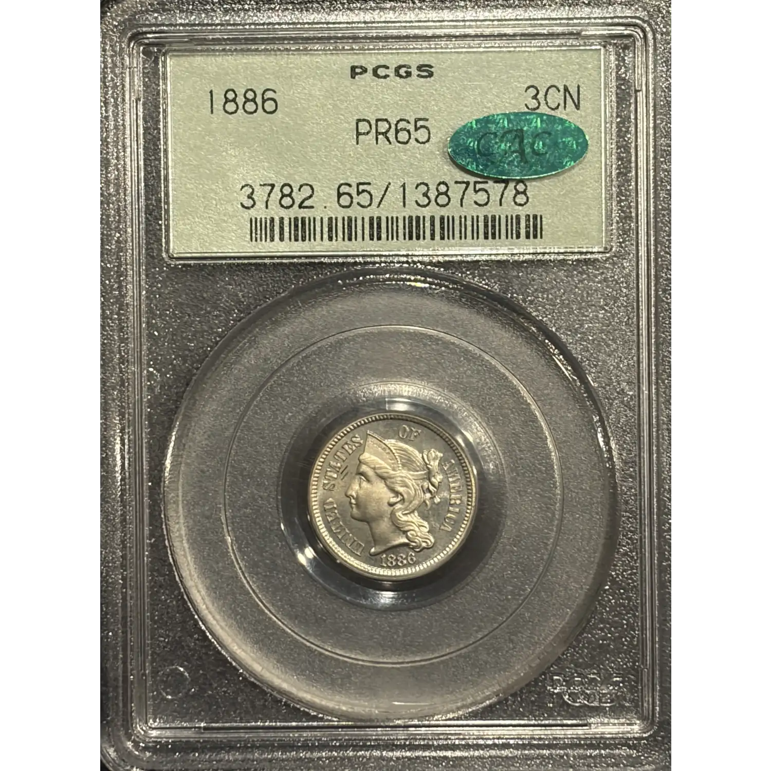 513010 | 1886-PR-65 Three Cent Pieces (Nickel) PCGS PR-65 CAC | PCGS | PR-65 | Sold: 10/09/2020 | $450 |