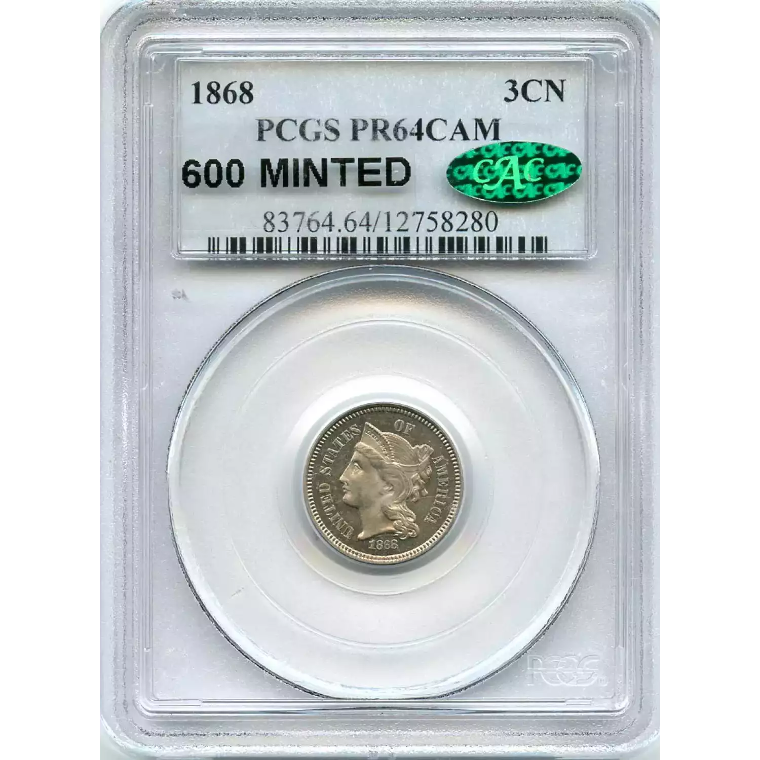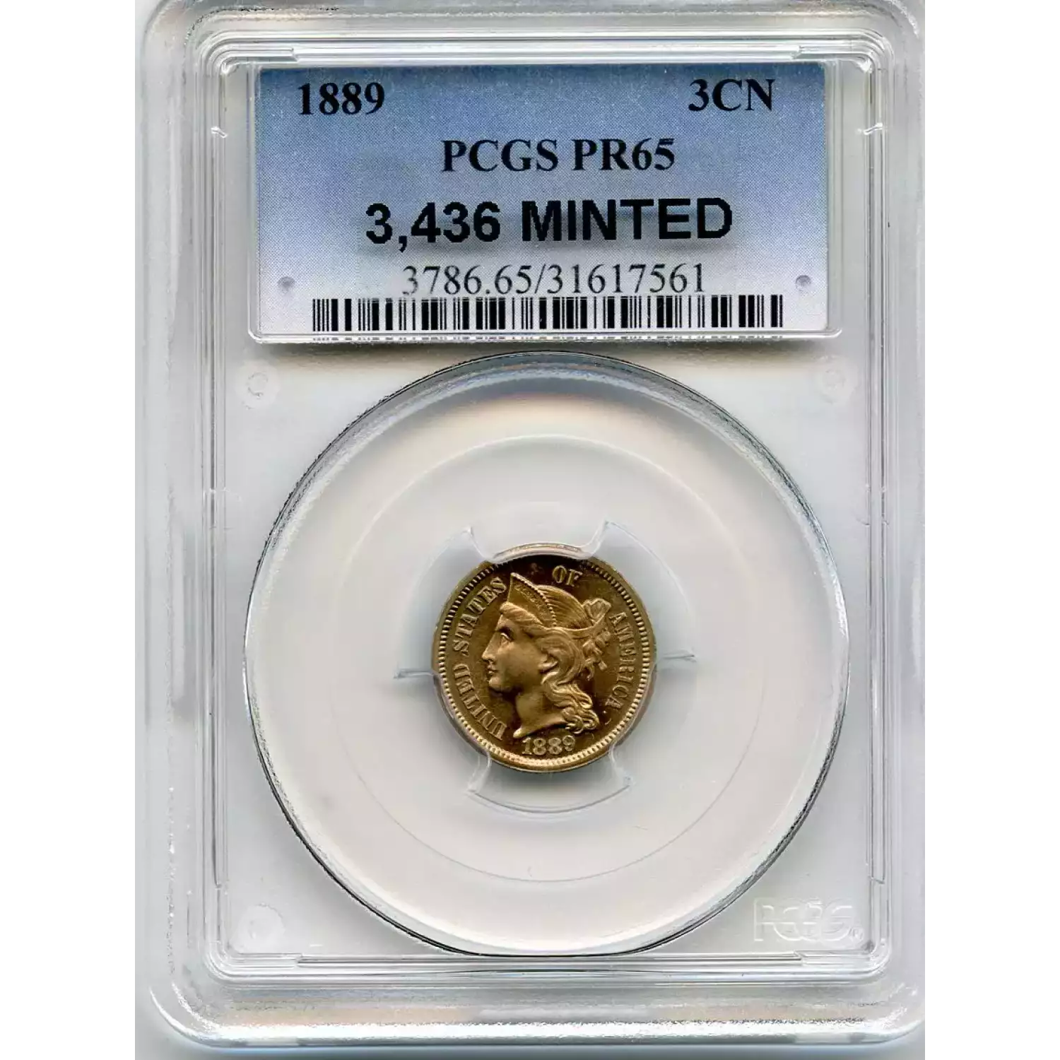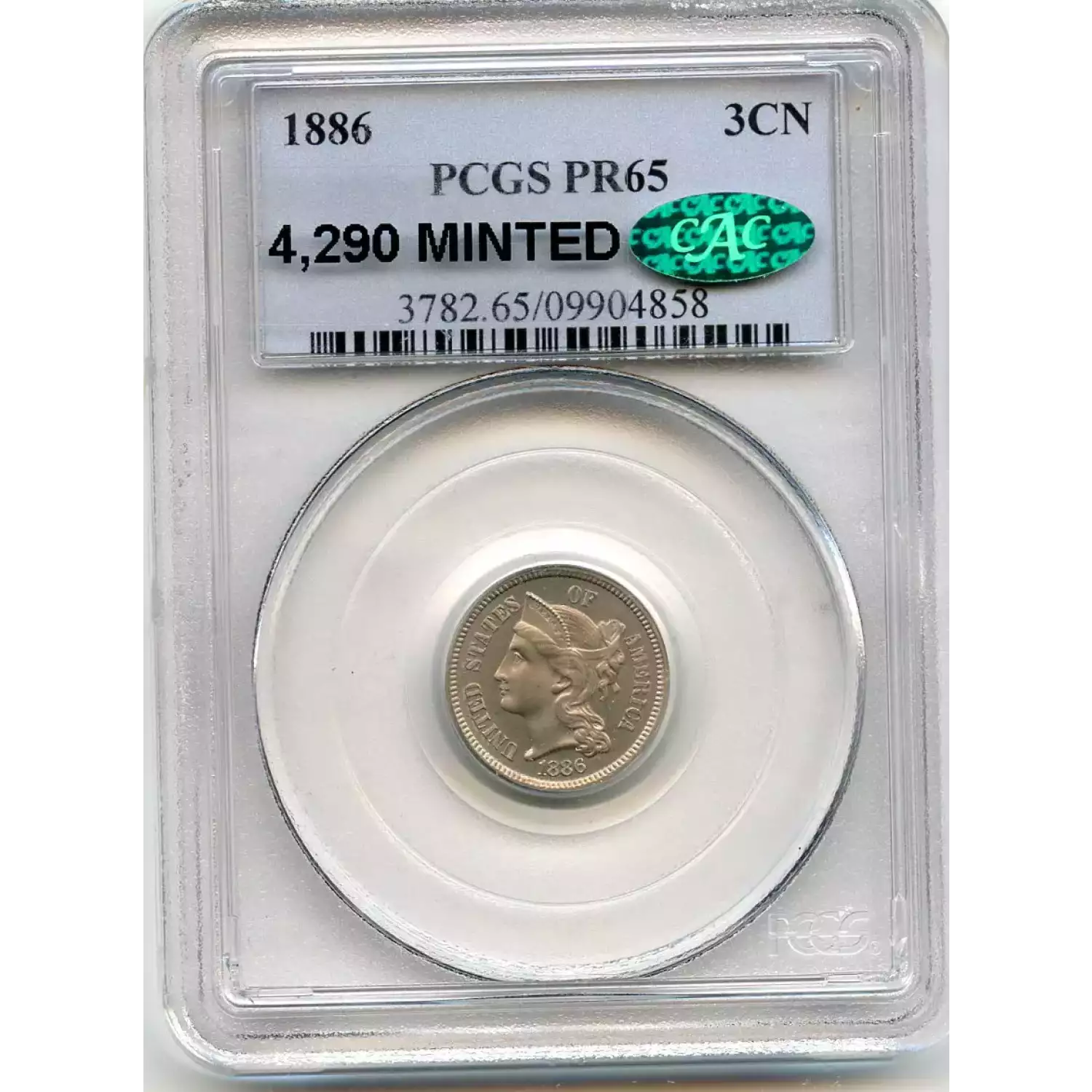 513010 | 1886-PR-65 Three Cent Pieces (Nickel) PCGS PR-65 CAC | PCGS | PR-65 | Sold: 10/09/2020 | $450 |