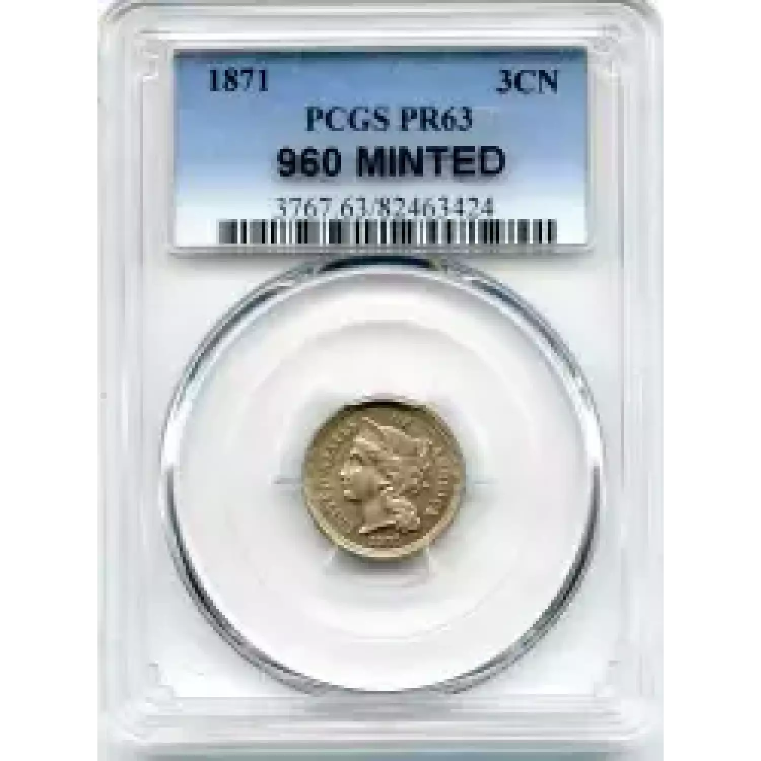 500879 | 1867 Three Cent Pieces (Nickel) PCGS PR-63 | PCGS | PR-63 | Sold: 22/06/2022 | $495 |