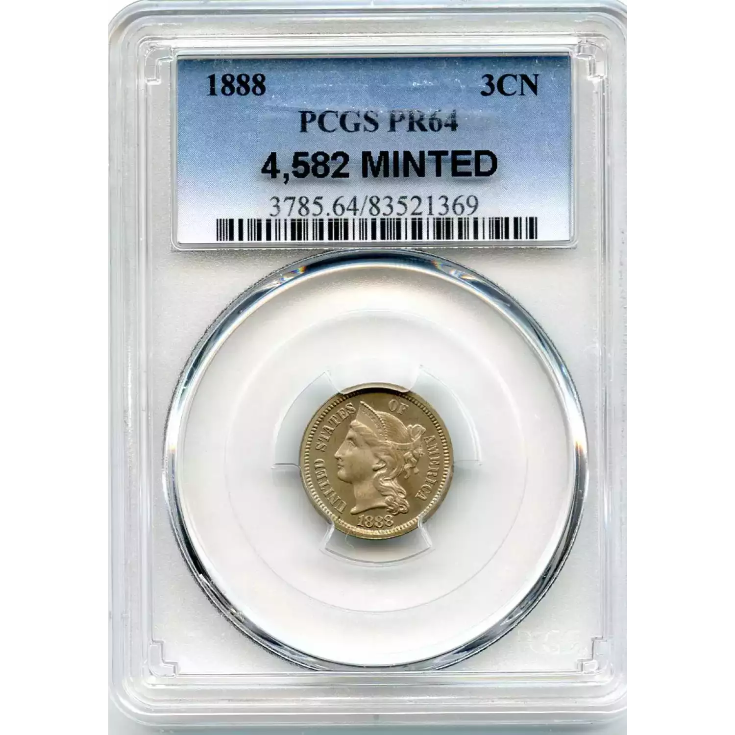 501713 | 1885 Three Cent Pieces (Nickel) PCGS PR-64 | PCGS | PR-64 | Sold: 03/05/2022 | $650 |