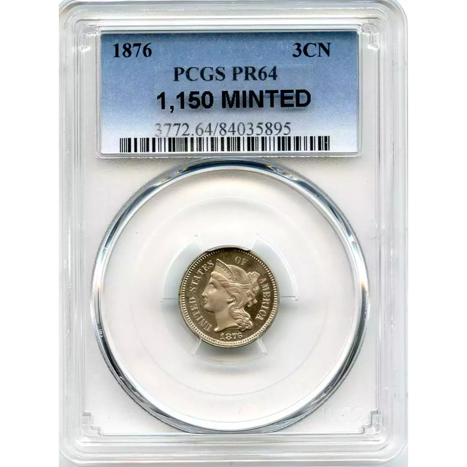 500881 | 1876 Three Cent Pieces (Nickel) PCGS PR-65 | PCGS | PR-65 | Sold: 08/03/2022 | $600 |