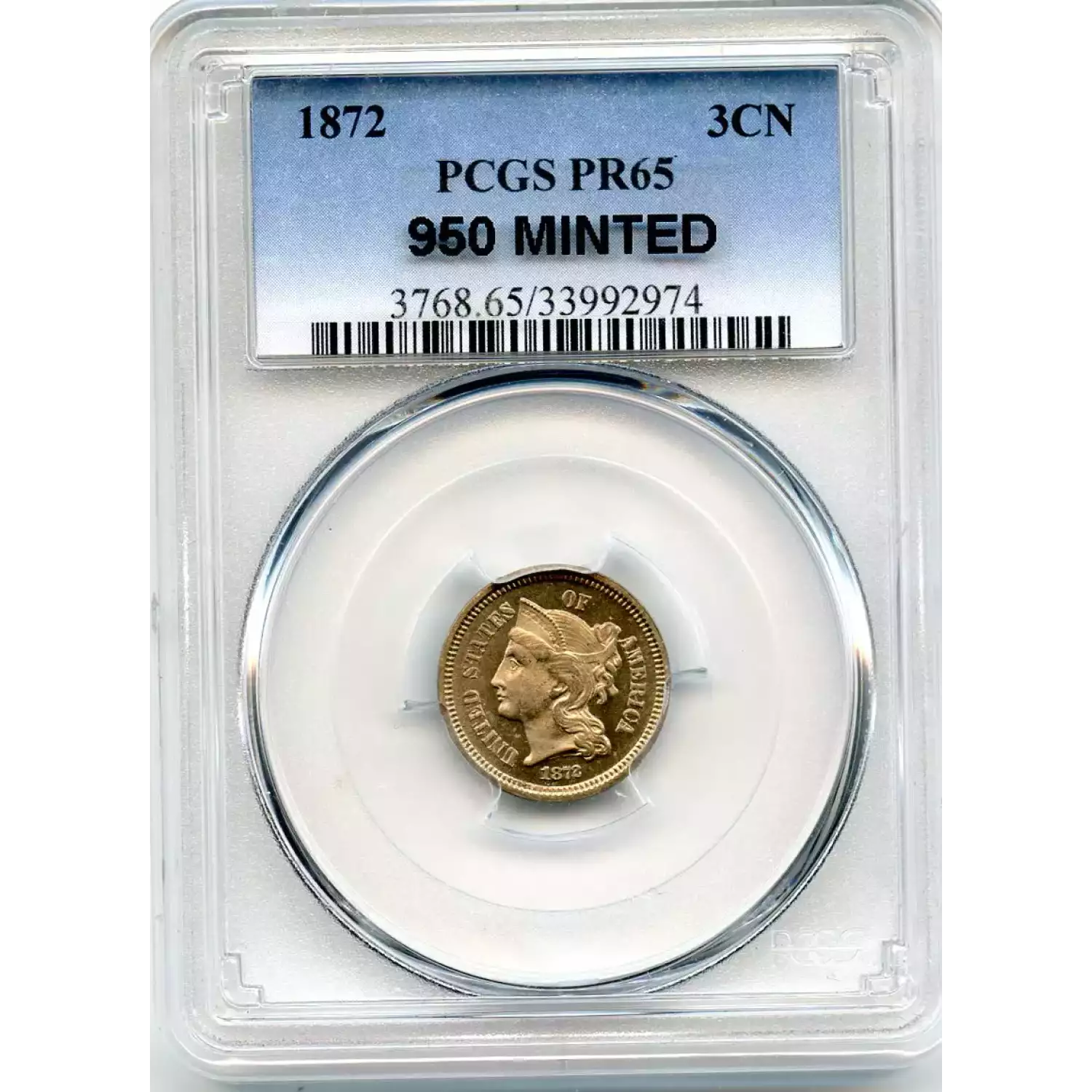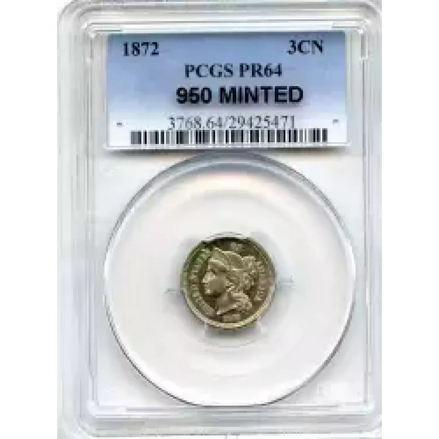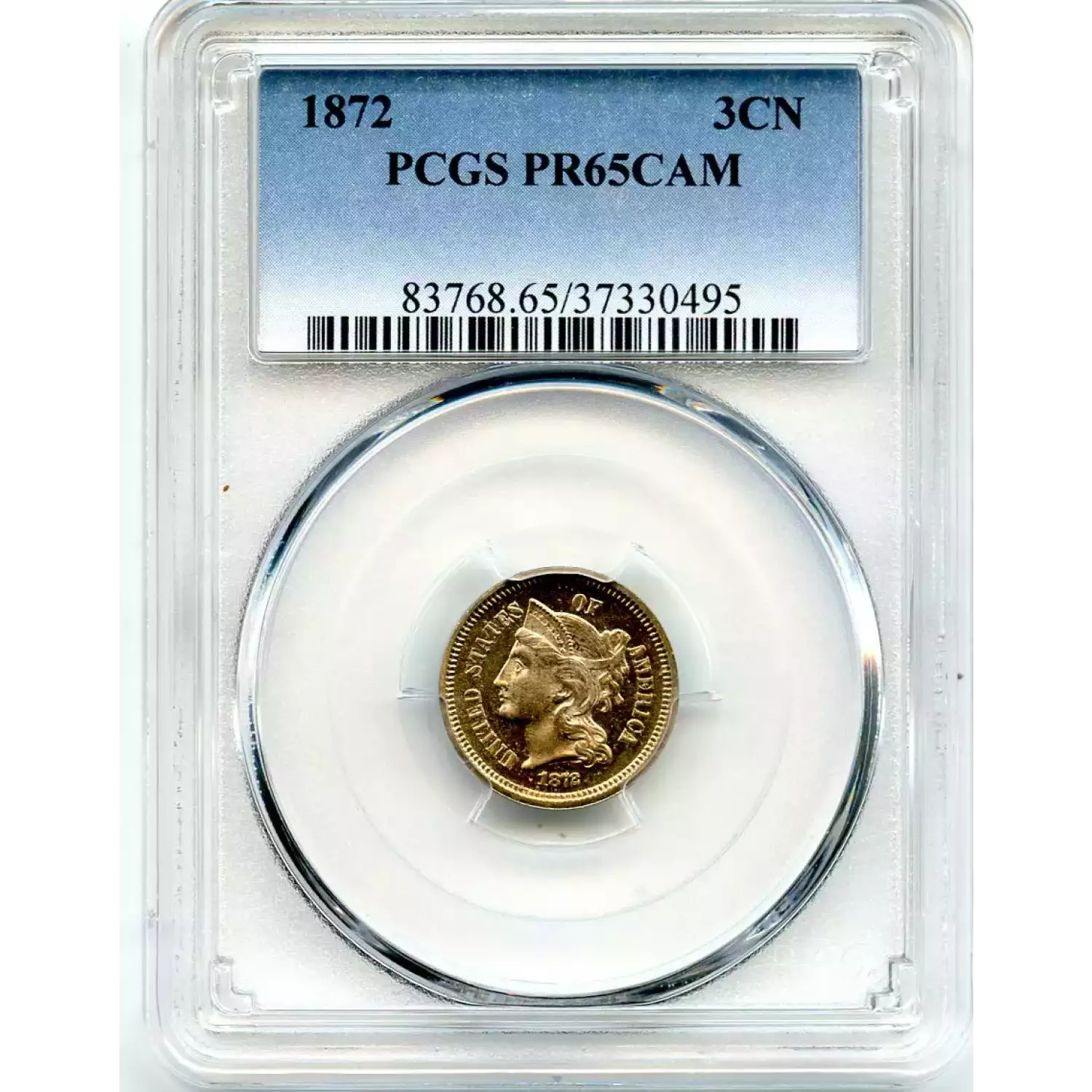 511234 | 1872-PR-65 Three Cent Pieces (Nickel) PCGS PR-65 | PCGS | PR-65 | Sold: 07/01/2020 | $465 |