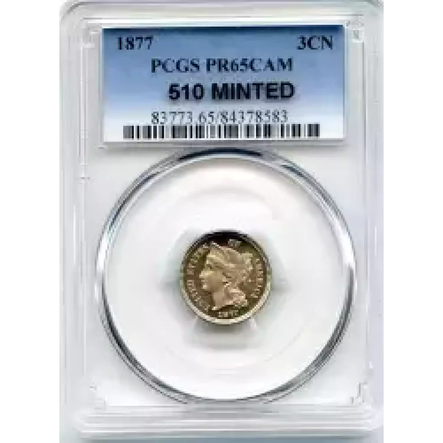 511286 | 1877-PR-65 Three Cent Pieces (Nickel) PCGS PR-65 CAM | PCGS | PR-65 | Sold: 15/04/2018 | $3,500 |