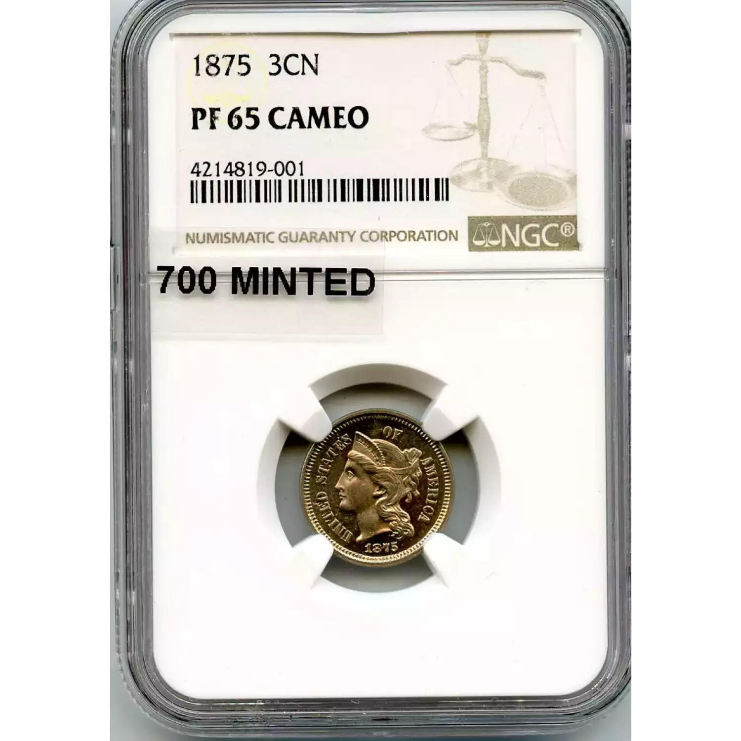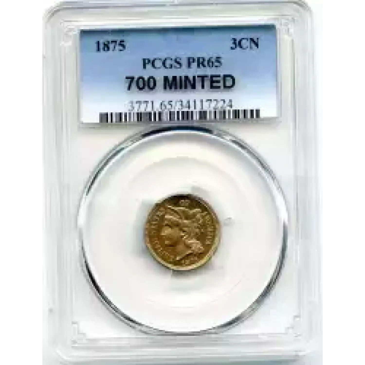 511597 | 1875-PF-65 Three Cent Pieces (Nickel) NGC PF-65 CAM | NGC | PF-65 | Sold: 05/03/2018 | $1,500 |