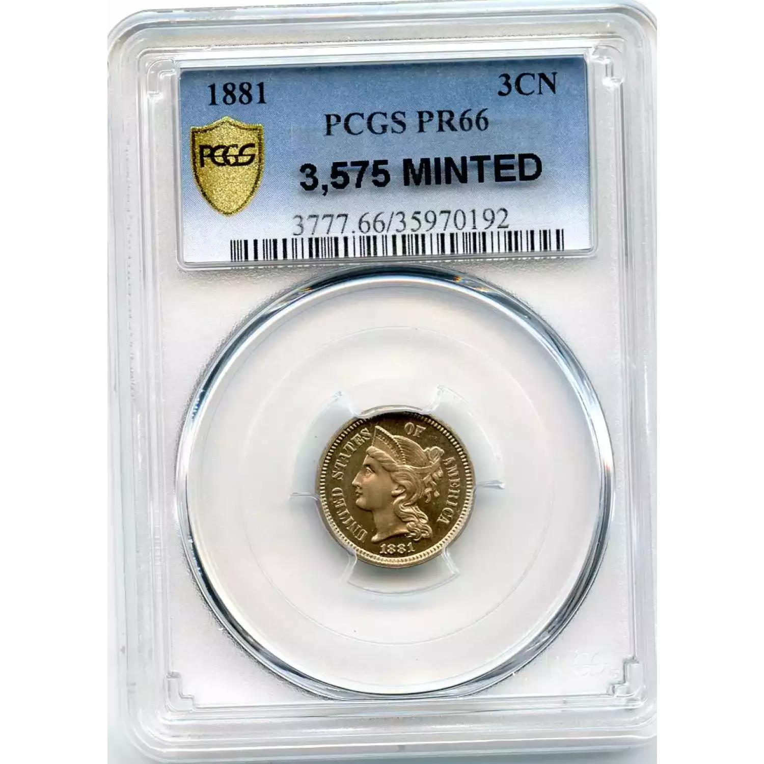 512212 | 1881-PR-66 Three Cent Pieces (Nickel) PCGS PR-66 CAC | PCGS | PR-66 | Sold: 09/04/2019 | $480 |