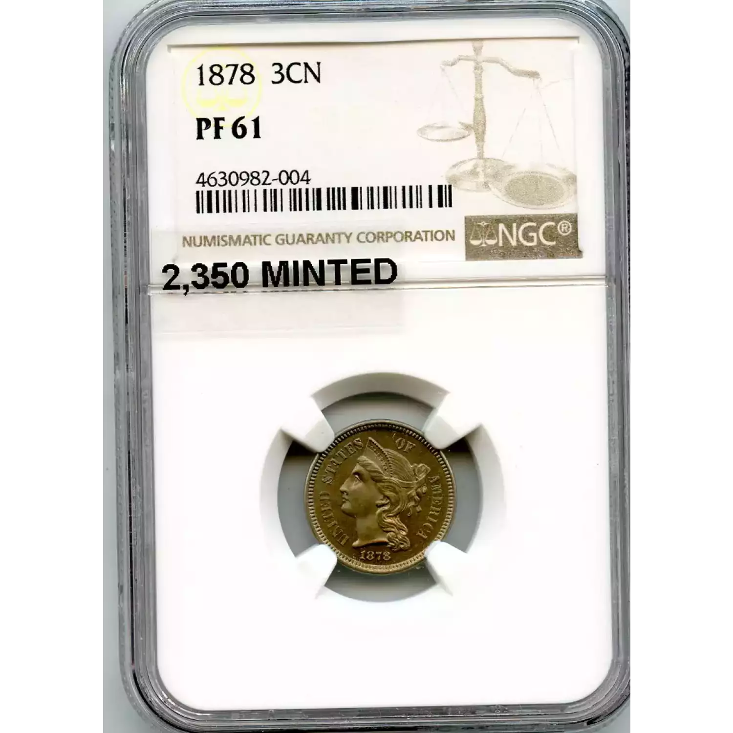 512516 | 1878-PR-61 Three Cent Pieces (Nickel) NGC PR-61 | NGC | PR-61 | Sold: 14/02/2019 | $620 |