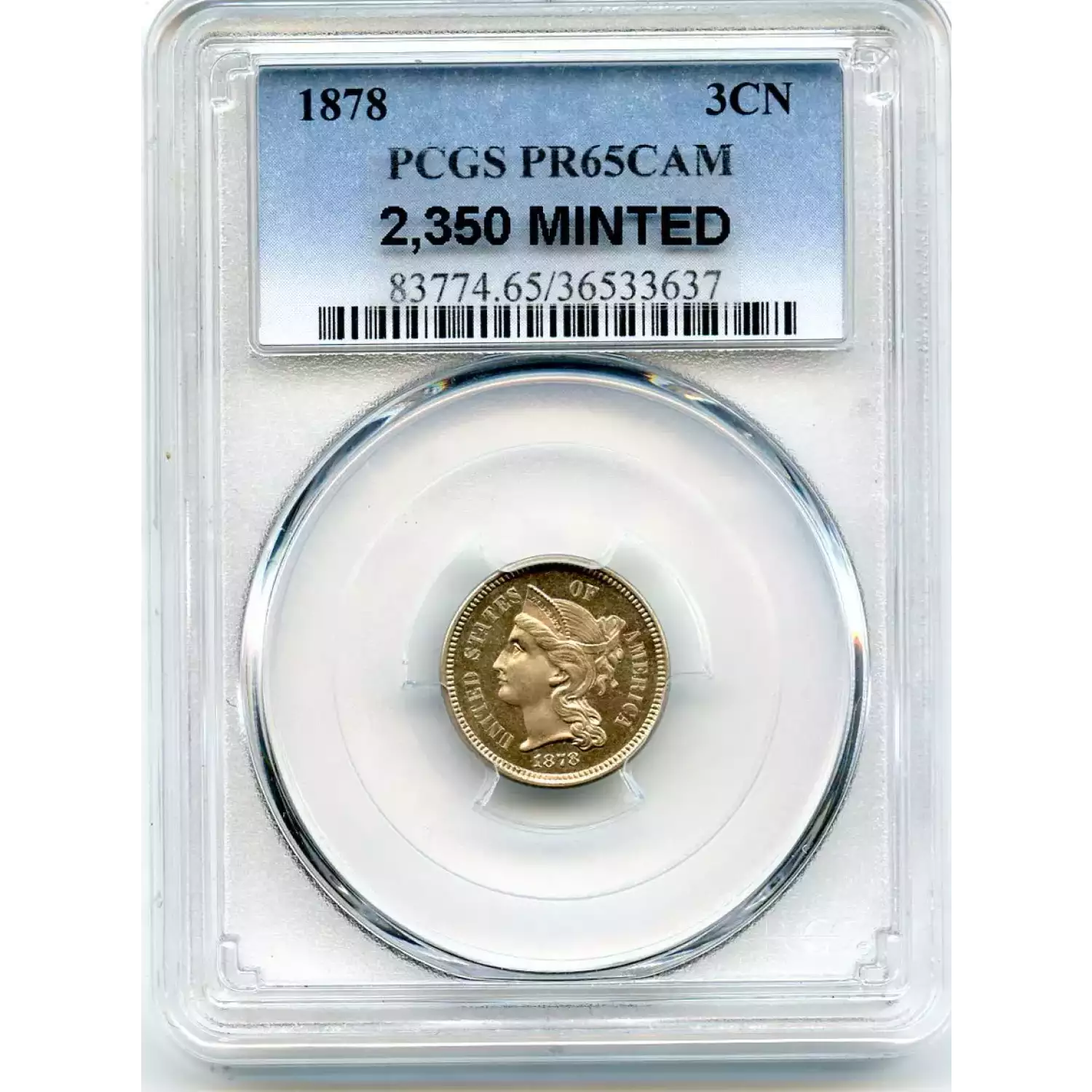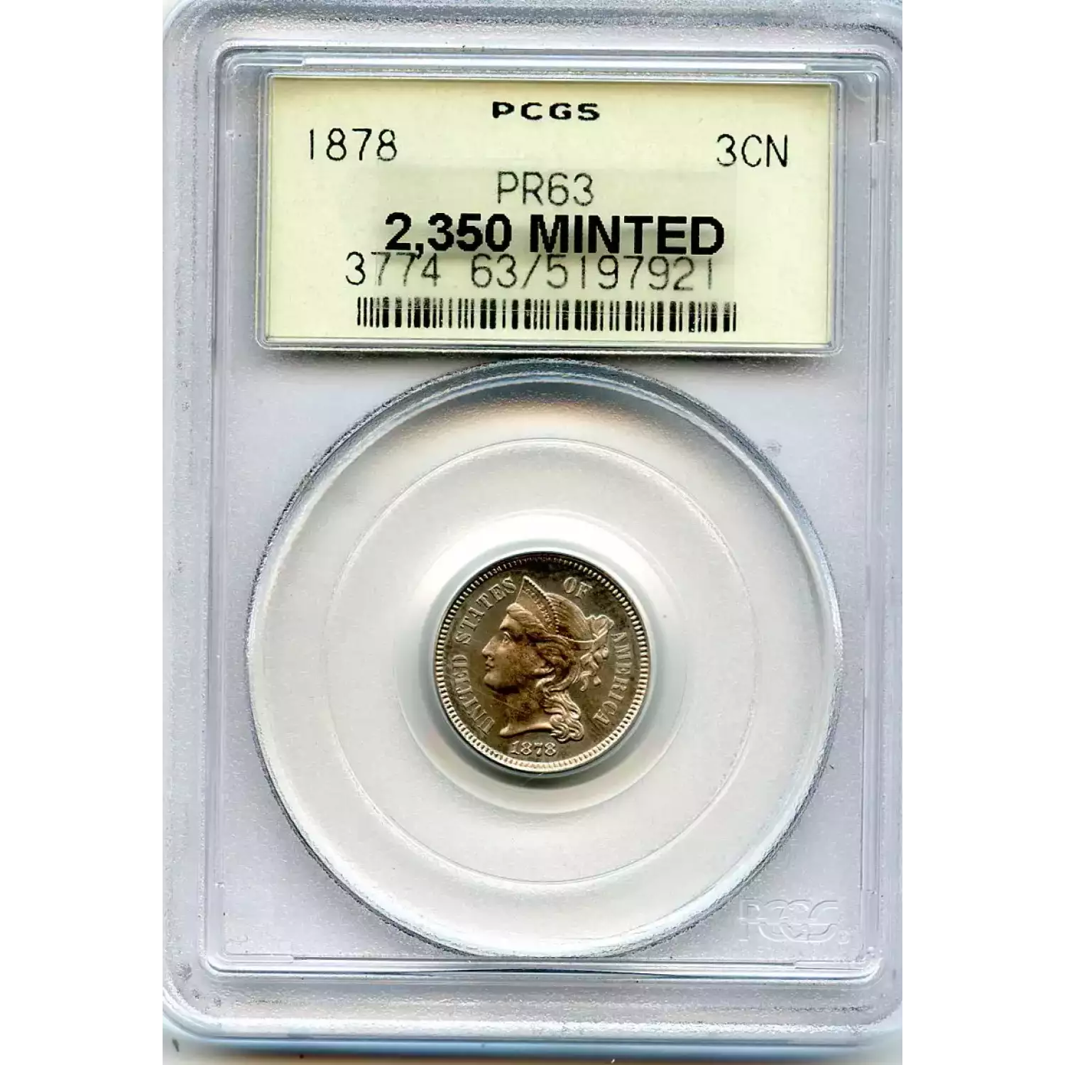 512960 | 1878-PR-65 Three Cent Pieces (Nickel) PCGS PR-65 CAM | PCGS | PR-65 | Sold: 17/05/2019 | $900 |