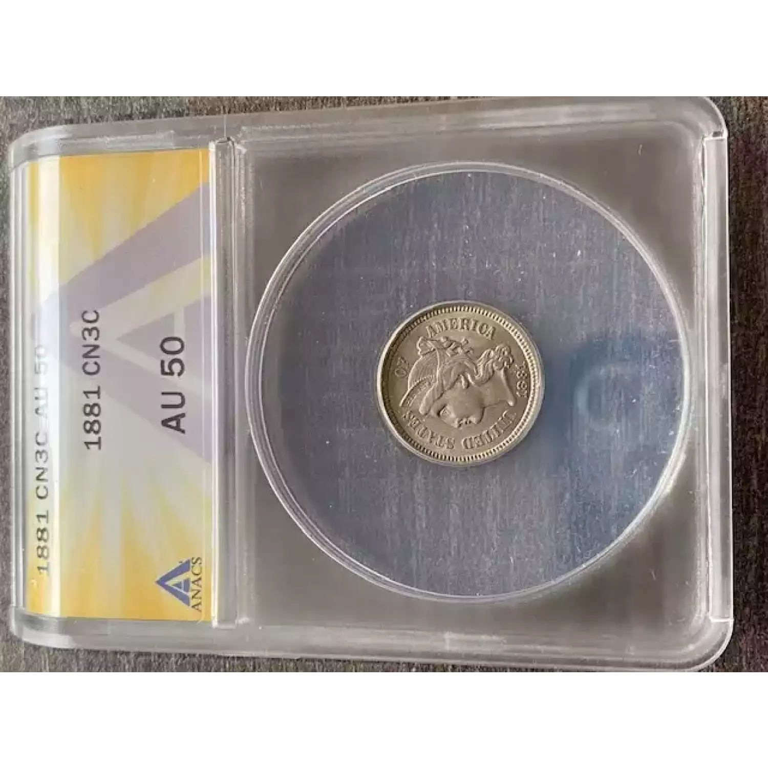 514670 | 1881-AU-50 Three Cent Pieces (Nickel) ANACS AU-50 | ANACS | AU-50 | Sold: 14/02/2021 | $75 |