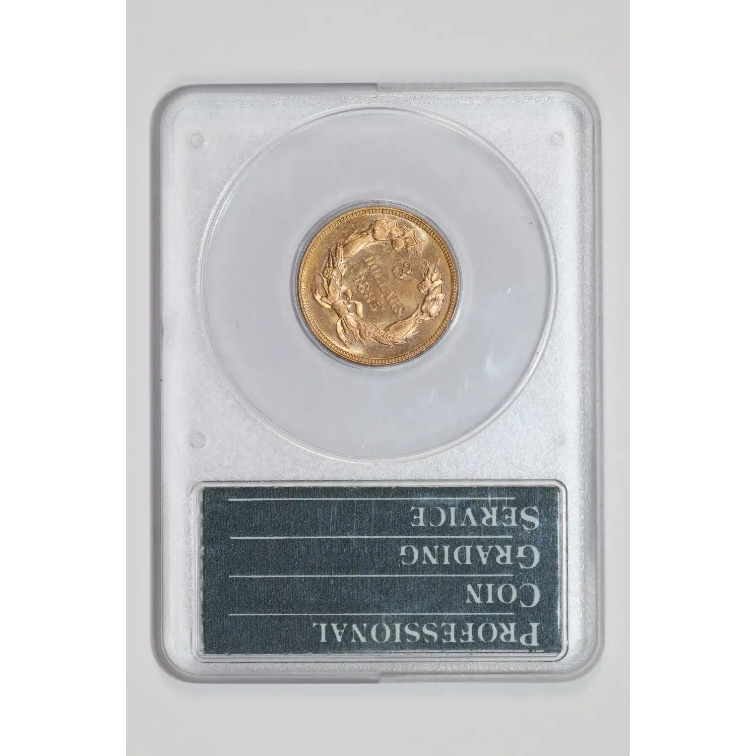 502788 | 1857-S Gold Three Dollars $3 Indian Princess Head PCGS Genuine - XF Details (92 - Cleaned) | PCGS | Genuine - XF Details (92 - Cleaned) | Sold: 03/10/2022 | $3,000 |