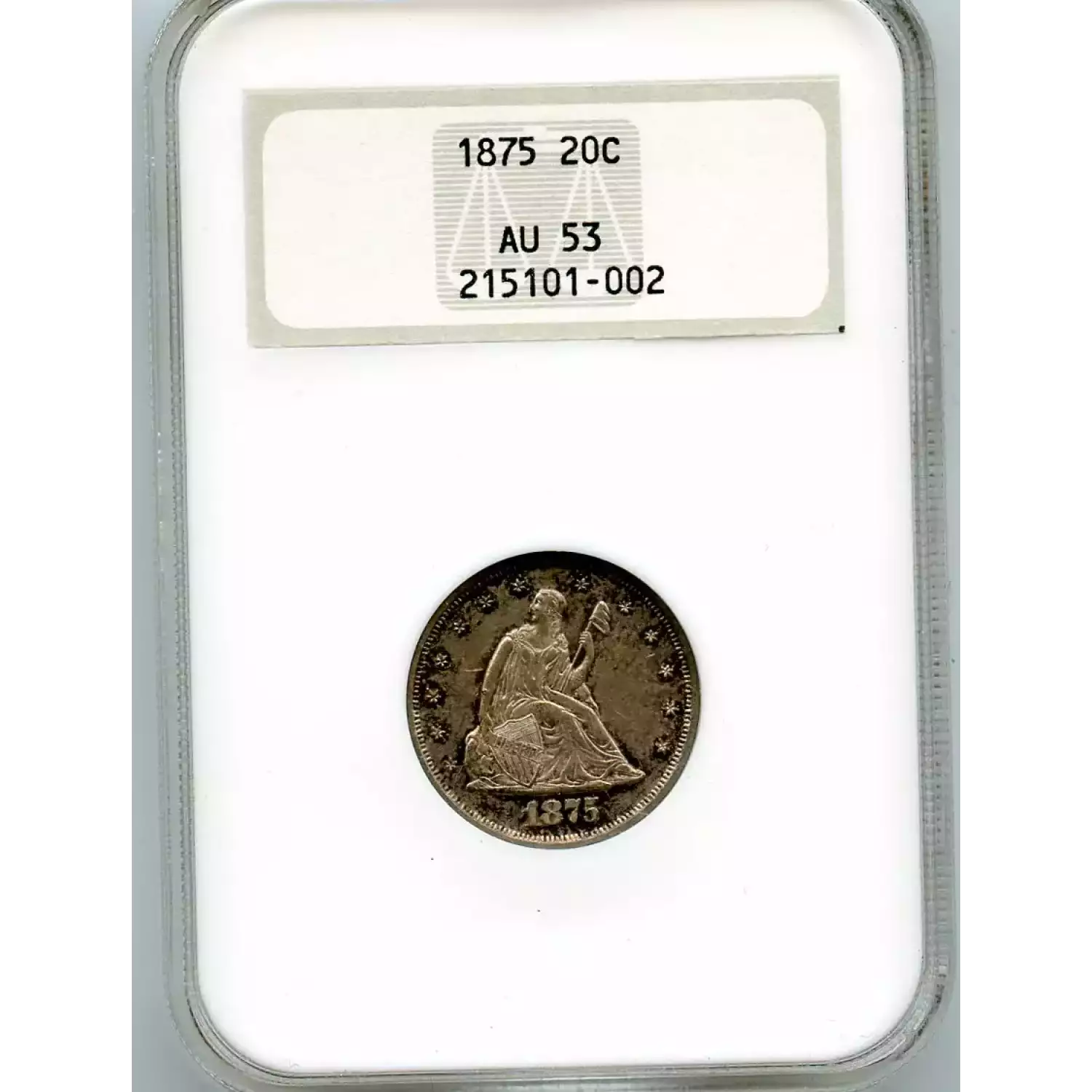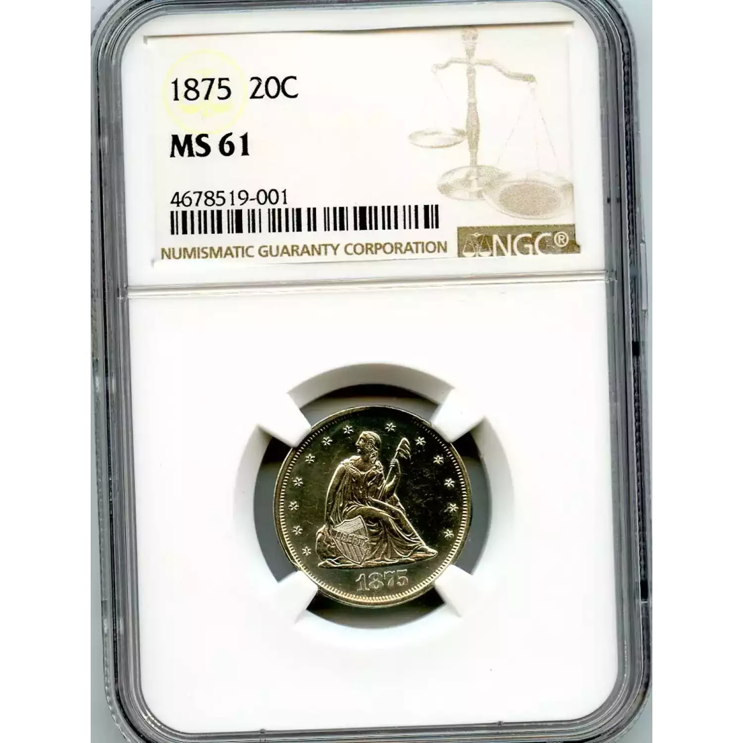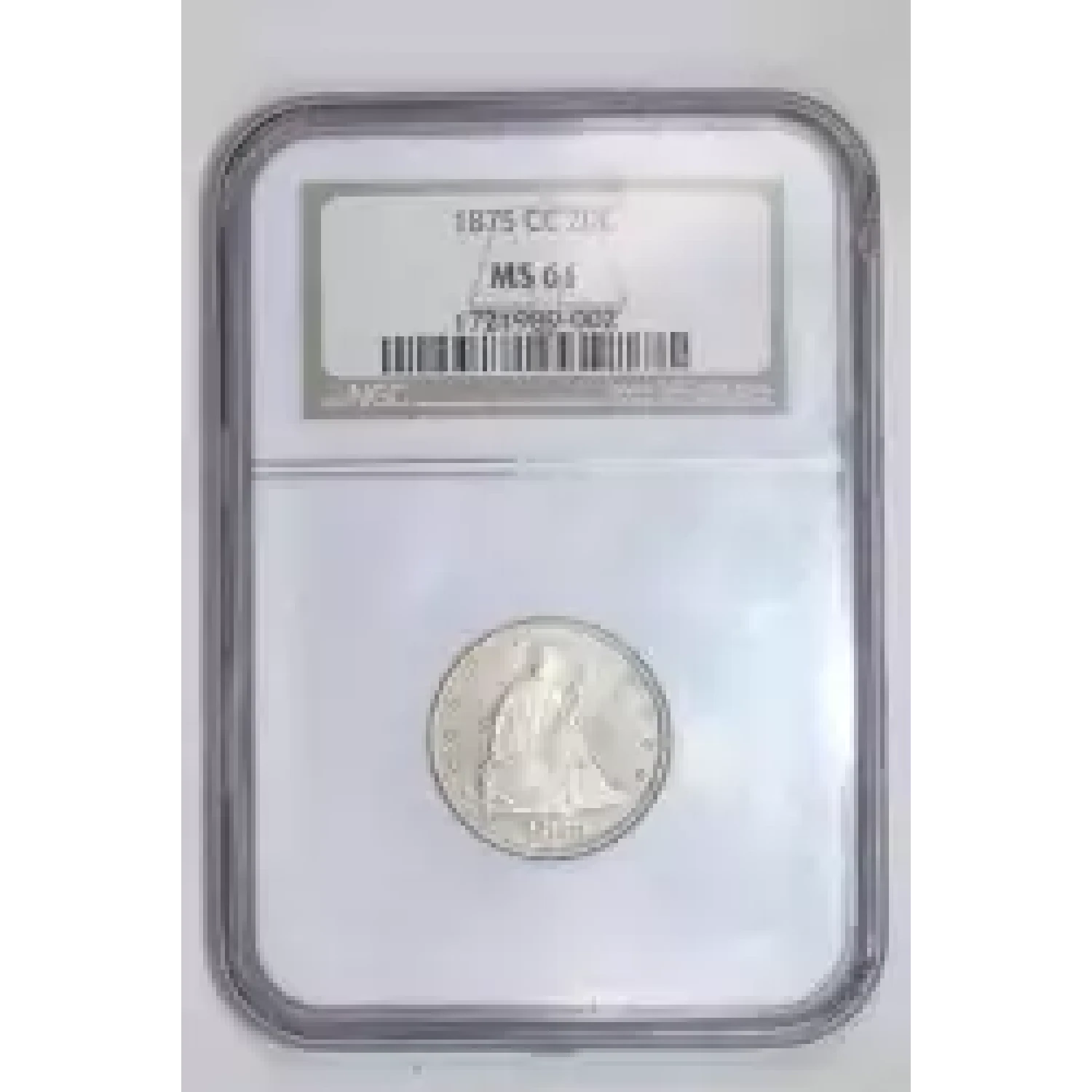 518756 | 1875-CC Seated Liberty Twenty Cents NGC MS-61 | NGC | MS-61 | Sold: 31/08/2023 | $2,750 |