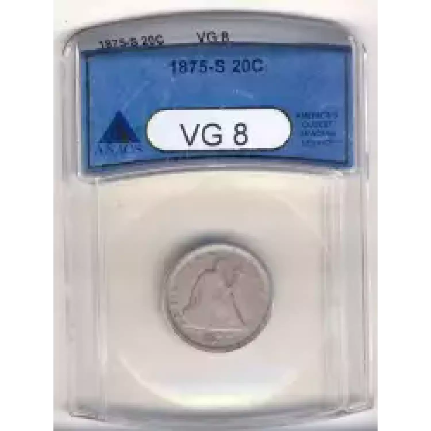 505103 | 1875-VG-8 Seated Liberty Twenty Cents ANACS VG-8 | ANACS | VG-8 | Sold: 01/07/2010 | $110 |