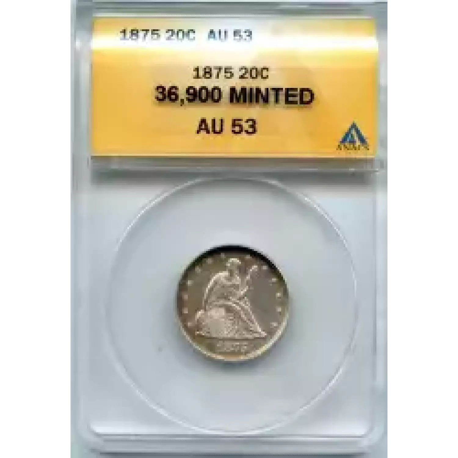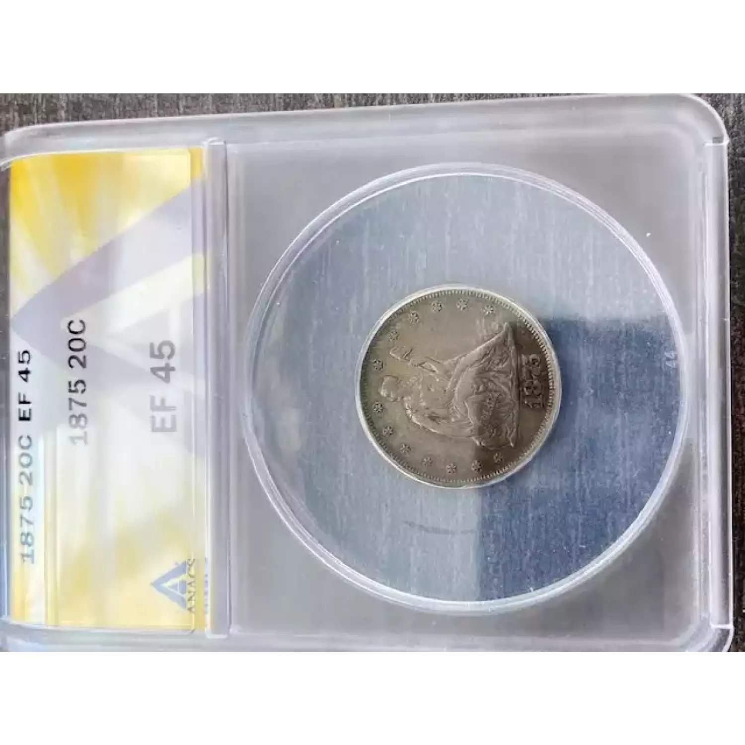 514633 | 1875-VF Details Seated Liberty Twenty Cents ANACS VF Details | ANACS | VF Details | Sold: 16/02/2021 | $110 |