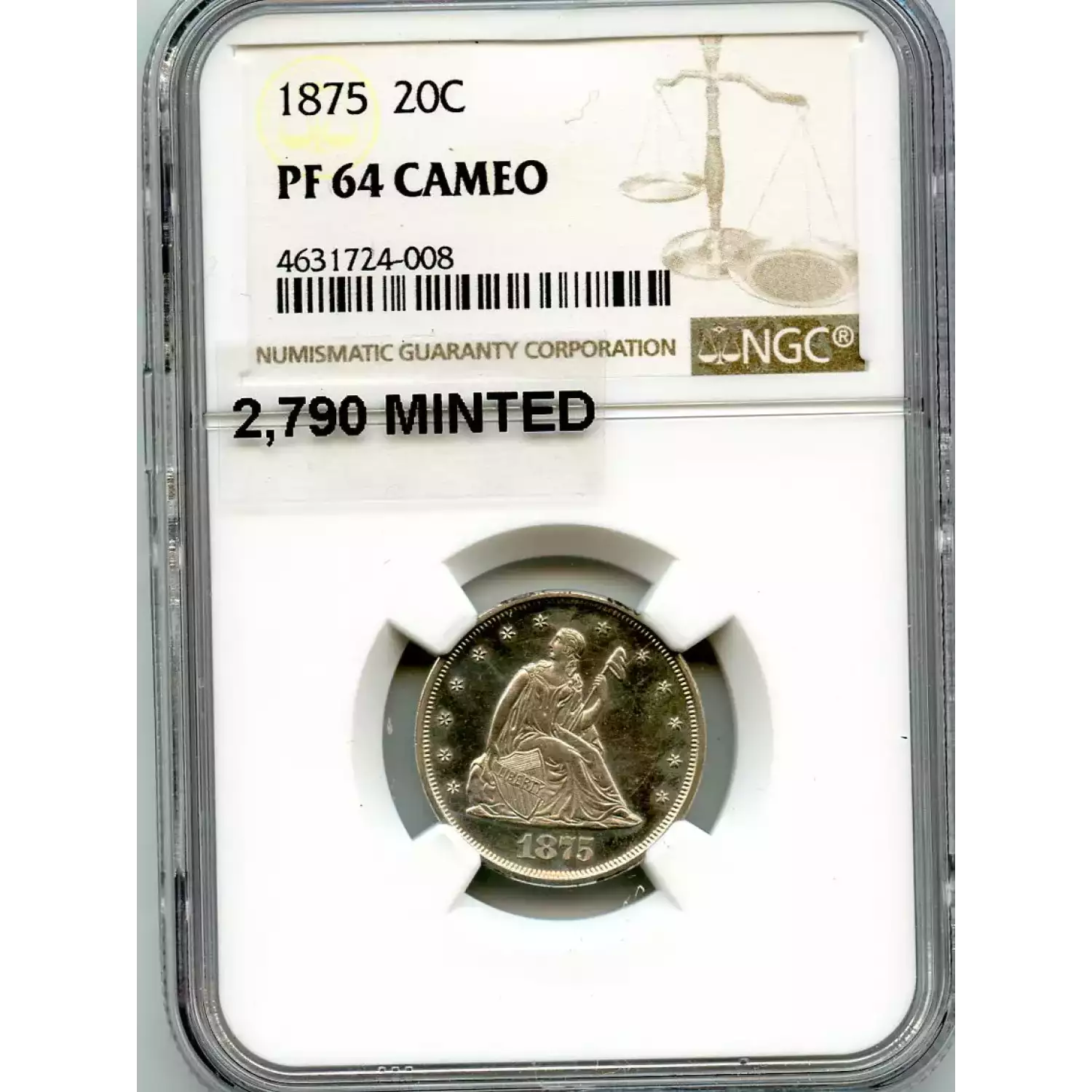 512914 | 1875-PR-64 Seated Liberty Twenty Cents NGC PR-64 CAM | NGC | PR-64 | Sold: 10/09/2019 | $3,400 |